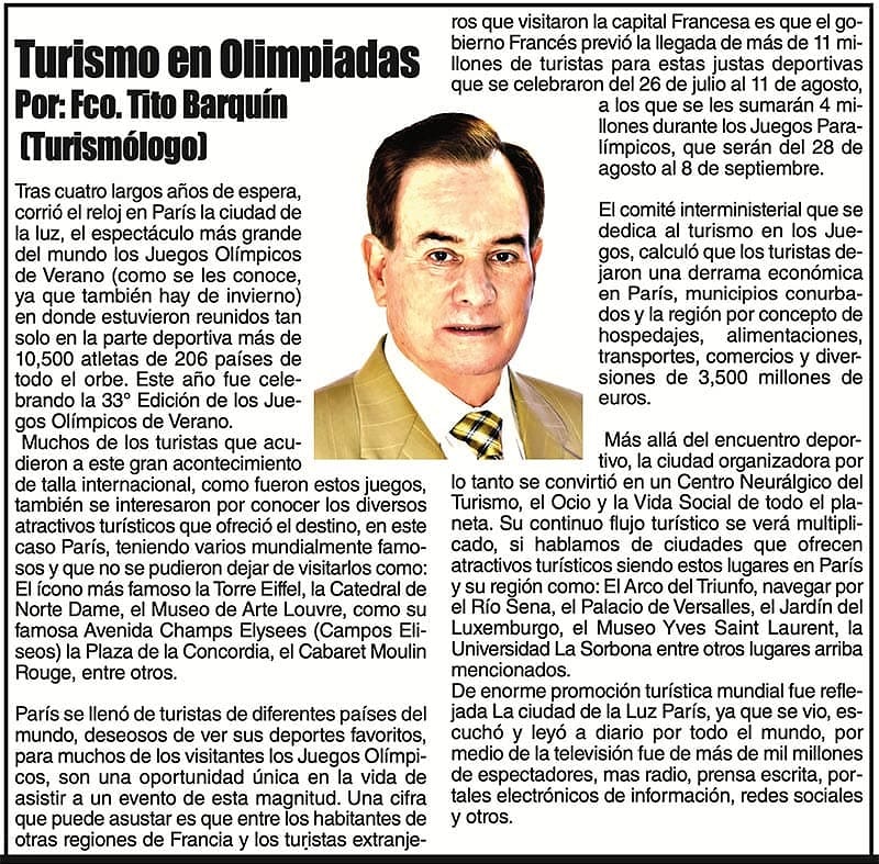 TURISMO EN OLIMPIADAS | - Tras cuatro largos años de espera, corrió el reloj en París la ciudad de la luz, el espectáculo más grande del mundo los Juegos Olímpicos de Verano (como se les conoce...