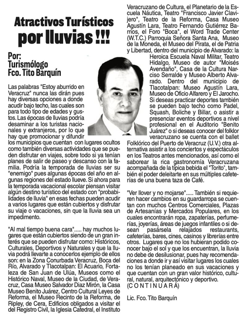 TURISMÓLOGO | ATRACTIVOS TURÍSTICOS POR LLUVIAS!!! - Las palabras "Estoy aburrido en Veracruz" nunca las dirán pues hay diversas opciones a donde acudir bajo techo, las cuales son para todo tipo de edades y gustos. Las épocas de lluvias...
