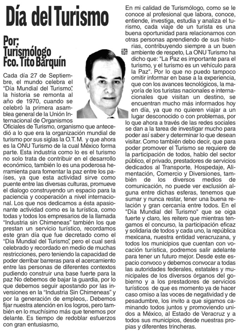 Cada día 27 de Septiembre, el mundo celebra el "Día Mundial del Turismo" la historia se remonta al año de 1970, cuando se celebró la primera asamblea general de la Unión Internacional de Organismos Oficiales de Turismo, organismo que...