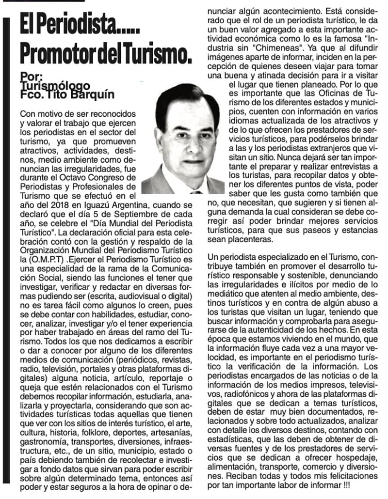 TURISMOLOGO | EL PERIODISTA - Con motivo de ser reconocidos y valorar el trabajo que ejercen los periodistas en el sector del turismo, ya que promueven atractivos, actividades, destinos, medio ambiente...