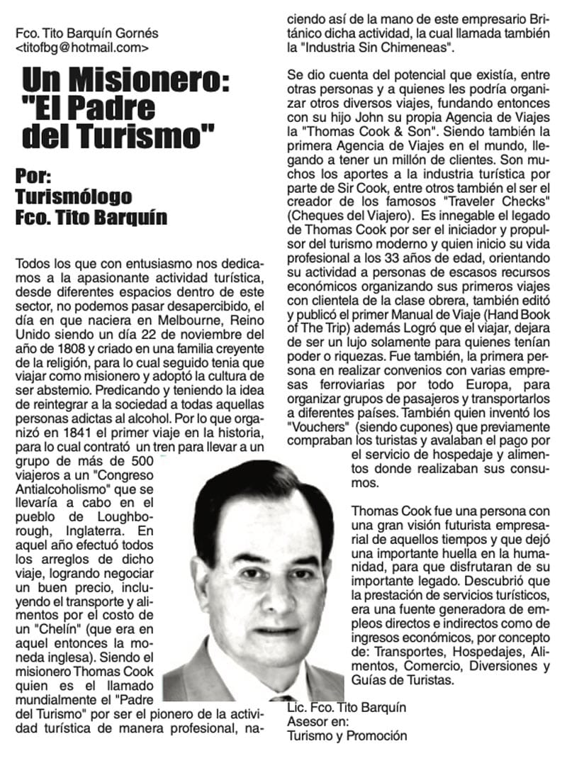 TURISMÓLOGO | UN MISIONERO: EL PADRE DEL TURISMO - Todos los que con entusiasmo nos dedicamos a la apasionante actividad turística, desde diferentes espacios dentro de este sector...