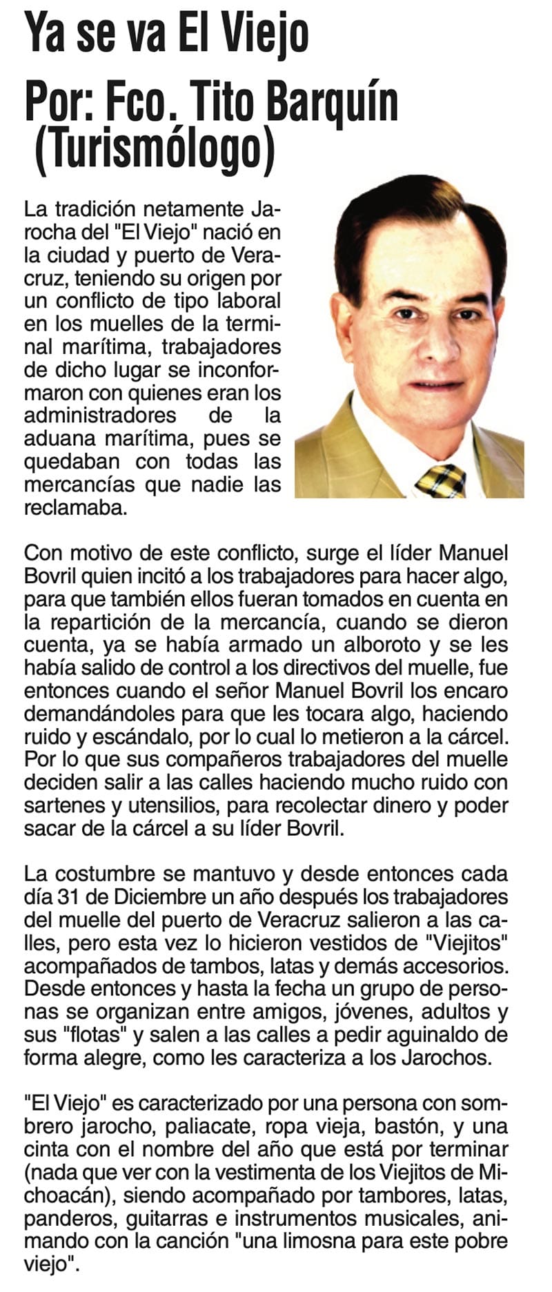 La tradición netamente Jarocha del "El Viejo" nació en la ciudad y puerto de Veracruz, teniendo su origen por un conflicto de tipo laboral en los muelles de la terminal marítima, trabajadores de dicho lugar se inconformaron...