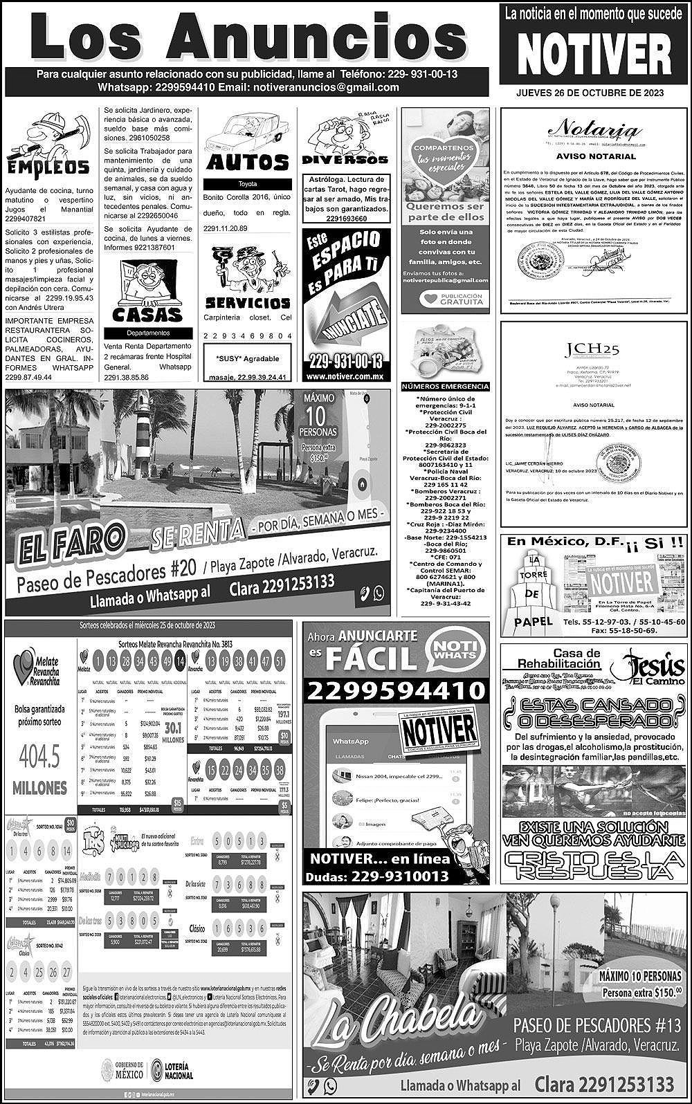 ...LOS ANUNCIOS, AVISOS Y DEMÁS! - JUEVES, 26 DE OCTUBRE 2023 LOS ANUNCIOS, AVISOS Y DEMÁS! - JUEVES, 26 DE OCTUBRE 2023 26 octubre 2023 Cotice Su Anuncio Su Correo Electrónico: Texto: Enviar