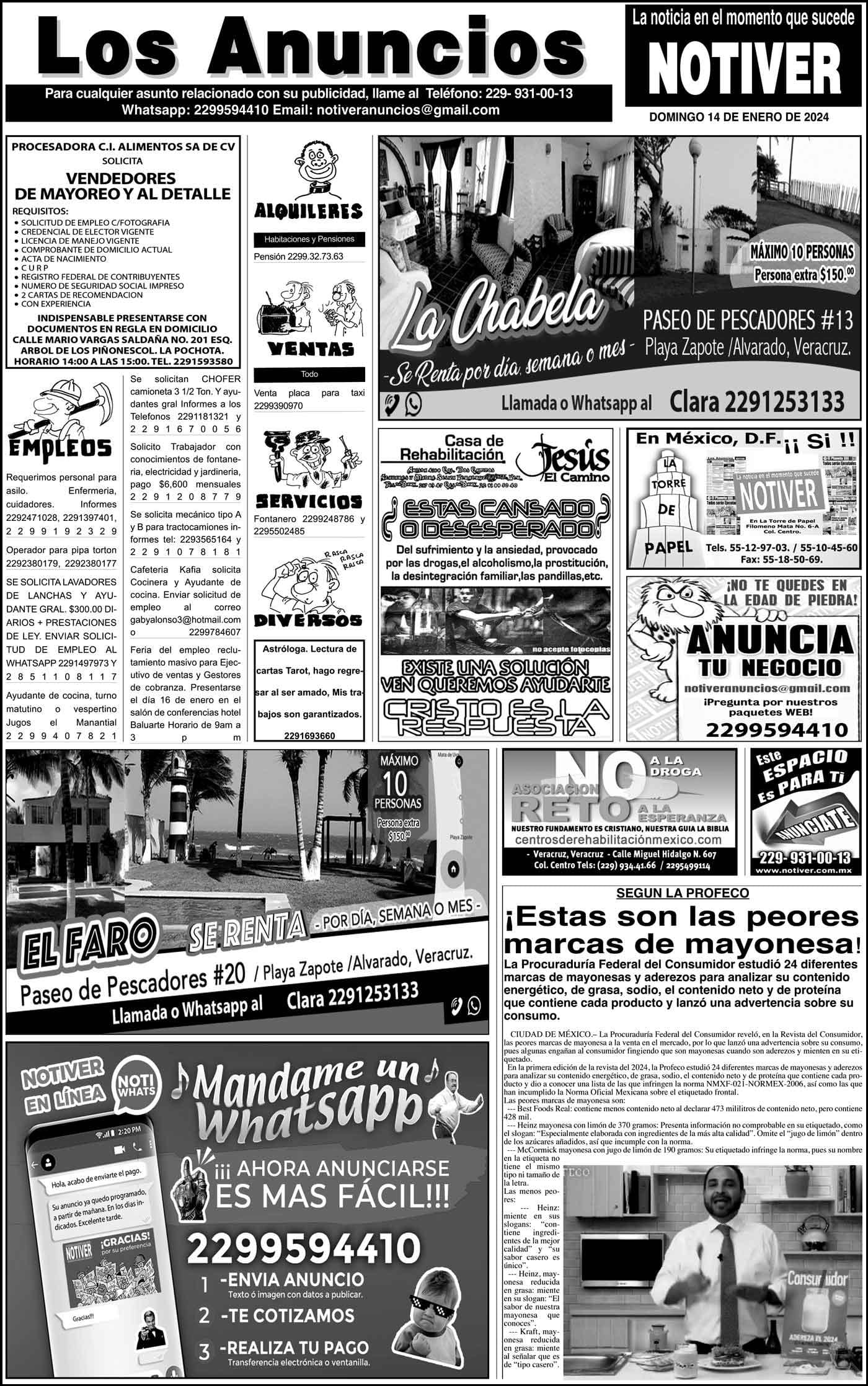 LOS ANUNCIOS ...LOS ANUNCIOS, AVISOS Y DEMÁS! - DOMINGO, 14 DE ENERO 2024 LOS ANUNCIOS, AVISOS Y DEMÁS! - DOMINGO, 14 DE ENERO 2024... 14 enero 2024 Cotice su Anuncio Su Correo Electrónico: Texto: Enviar
