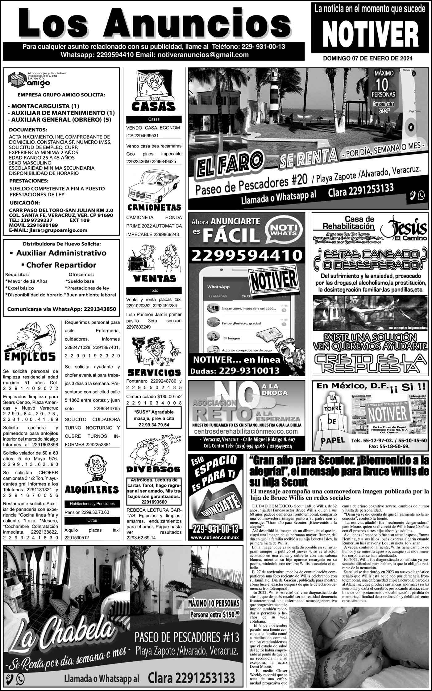 LOS ANUNCIOS ...LOS ANUNCIOS, AVISOS Y DEMÁS! - DOMINGO, 7 DE ENERO 2024 LOS ANUNCIOS, AVISOS Y DEMÁS! - DOMINGO, 7 DE ENERO 2024... 7 enero 2024 Cotice su Anuncio Su Correo Electrónico: Texto: Enviar