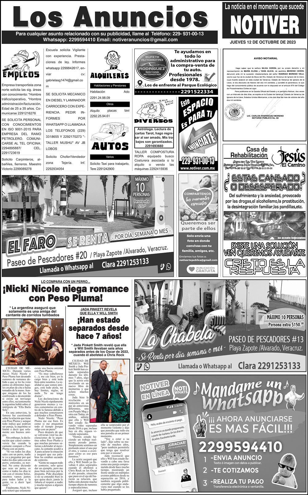 LOS ANUNCIOS ...LOS ANUNCIOS, AVISOS Y DEMÁS! - JUEVES, 12 DE OCTUBRE 2023 LOS ANUNCIOS, AVISOS Y DEMÁS! - JUEVES, 12 DE OCTUBRE 2023 12 octubre 2023 Cotice su Anuncio Su Correo Electrónico: Texto: Enviar