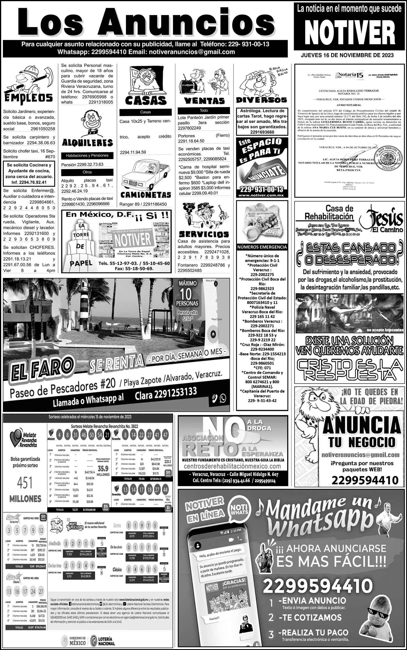 LOS ANUNCIOS ...LOS ANUNCIOS, AVISOS Y DEMÁS! - JUEVES, 16 DE NOVIEMBRE 2023 LOS ANUNCIOS, AVISOS Y DEMÁS! - JUEVES, 16 DE NOVIEMBRE 2023 16 noviembre 2023 Cotice su Anuncio Su Correo Electrónico: Texto: Enviar