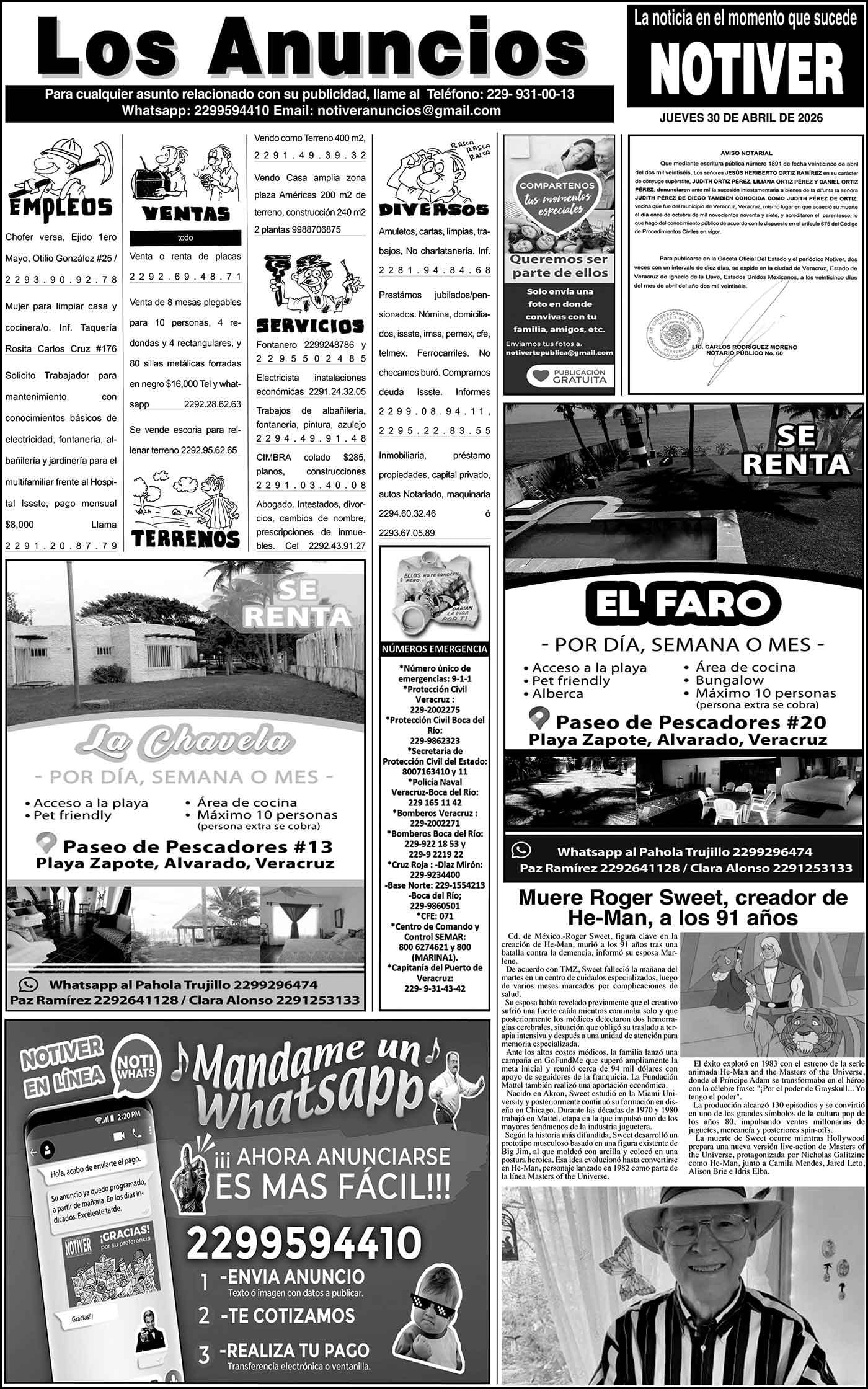LOS ANUNCIOS ...LOS ANUNCIOS, AVISOS Y DEMÁS! - JUEVES, 30 DE ABRIL 2026 LOS ANUNCIOS, AVISOS Y DEMÁS! - JUEVES, 30 DE ABRIL 2026... 30 abril 2026