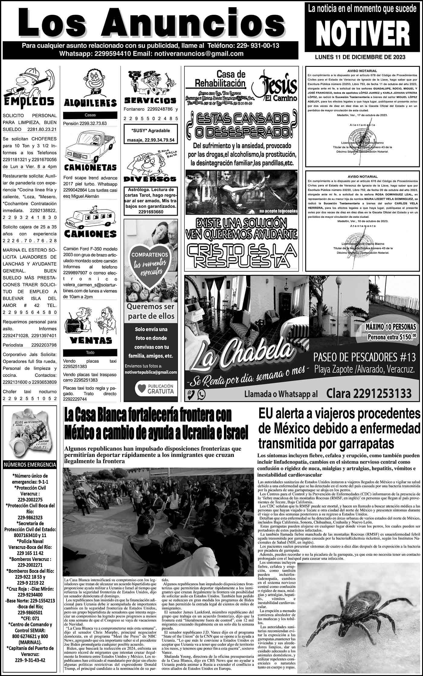 LOS ANUNCIOS ...LOS ANUNCIOS, AVISOS Y DEMÁS! - LUNES, 11 DE DICIEMBRE 2023 LOS ANUNCIOS, AVISOS Y DEMÁS! - LUNES, 11 DE DICIEMBRE 2023 11 diciembre 2023 Cotice su Anuncio Su Correo Electrónico: Texto: Enviar
