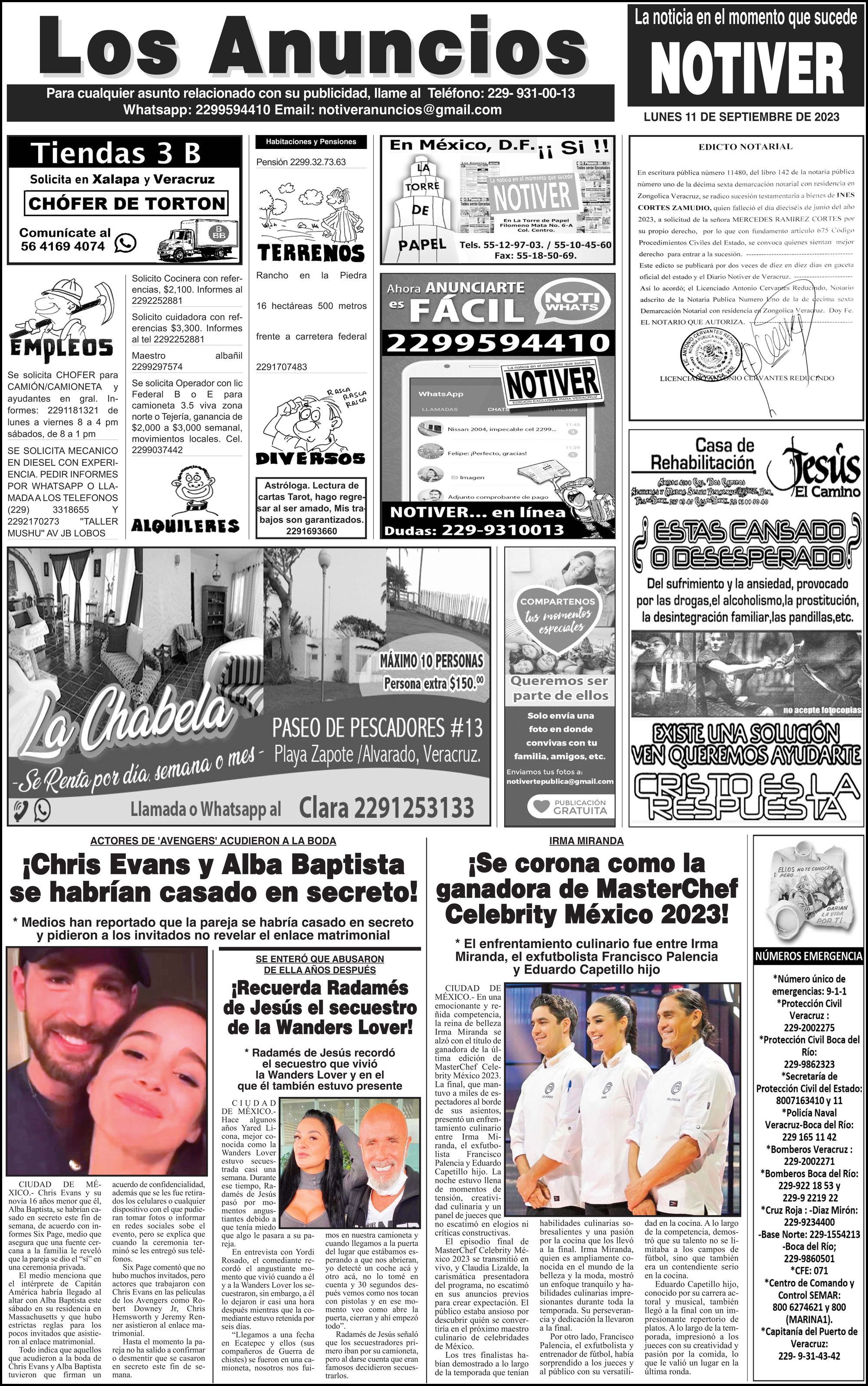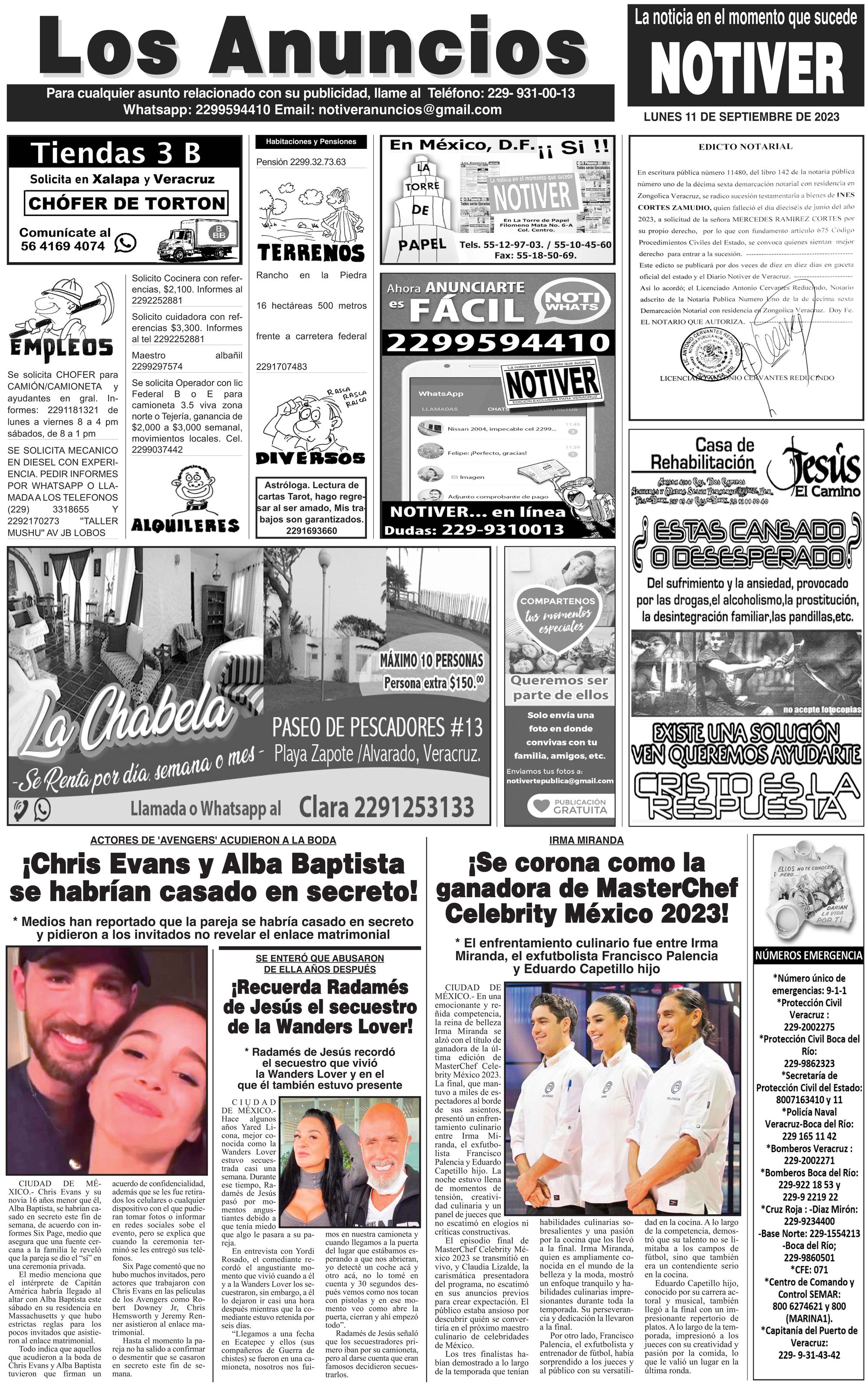 LOS ANUNCIOS ...LOS ANUNCIOS, AVISOS Y DEMÁS! - LUNES, 11 DE SEPTIEMBRE 2023 LOS ANUNCIOS, AVISOS Y DEMÁS! - LUNES, 11 DE SEPTIEMBRE 2023 11 septiembre 2023 Cotice su Anuncio Su Correo Electrónico: Texto: Enviar