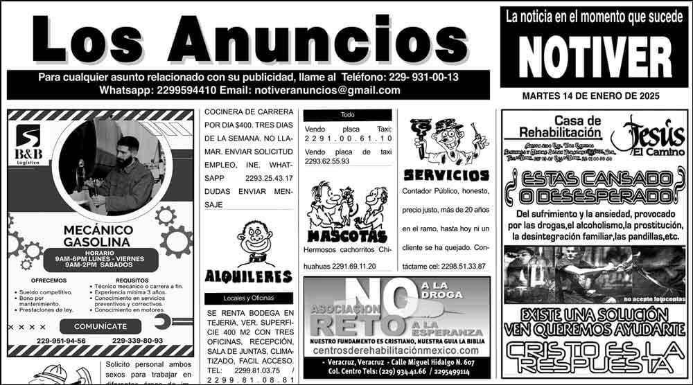 LOS ANUNCIOS ...LOS ANUNCIOS, AVISOS Y DEMÁS! - MARTES, 14 DE ENERO 2025 LOS ANUNCIOS, AVISOS Y DEMÁS! - MARTES, 14 DE ENERO 2025... 14 enero 2025