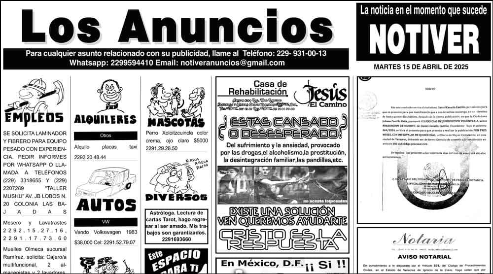 LOS ANUNCIOS ...LOS ANUNCIOS, AVISOS Y DEMÁS! - MARTES, 15 DE ABRIL 2025 LOS ANUNCIOS, AVISOS Y DEMÁS! - MARTES, 15 DE ABRIL 2025... 15 abril 2025