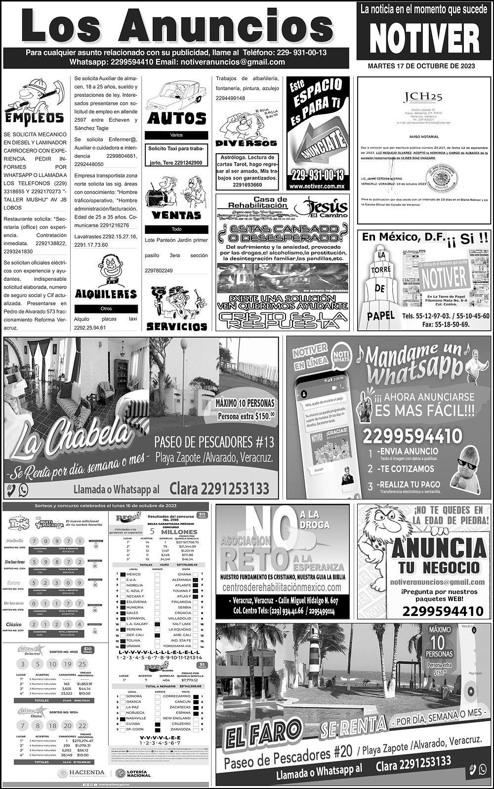 LOS ANUNCIOS ...LOS ANUNCIOS, AVISOS Y DEMÁS! - MARTES, 17 DE OCTUBRE 2023 LOS ANUNCIOS, AVISOS Y DEMÁS! - MARTES, 17 DE OCTUBRE 2023 17 octubre 2023 Cotice su Anuncio Su Correo Electrónico: Texto: Enviar