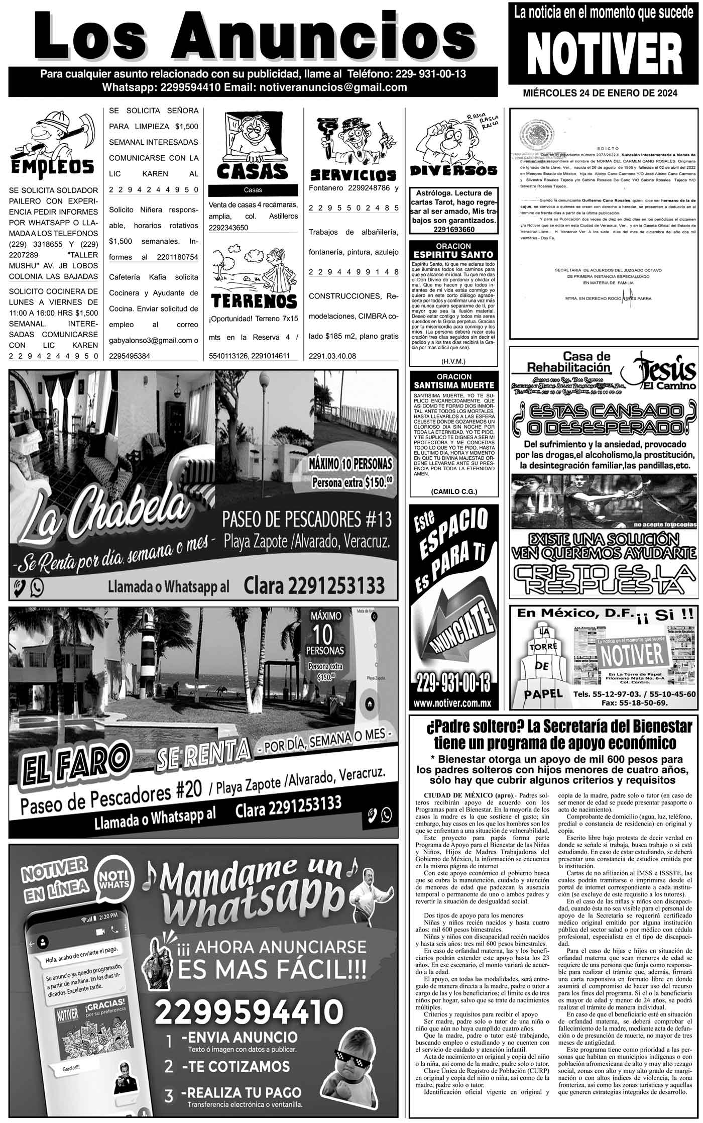 LOS ANUNCIOS ...LOS ANUNCIOS, AVISOS Y DEMÁS! - MIÉRCOLES, 24 DE ENERO 2024 LOS ANUNCIOS, AVISOS Y DEMÁS! - MIÉRCOLES, 24 DE ENERO 2024... 24 enero 2024 Cotice su Anuncio Su Correo Electrónico: Texto: Enviar