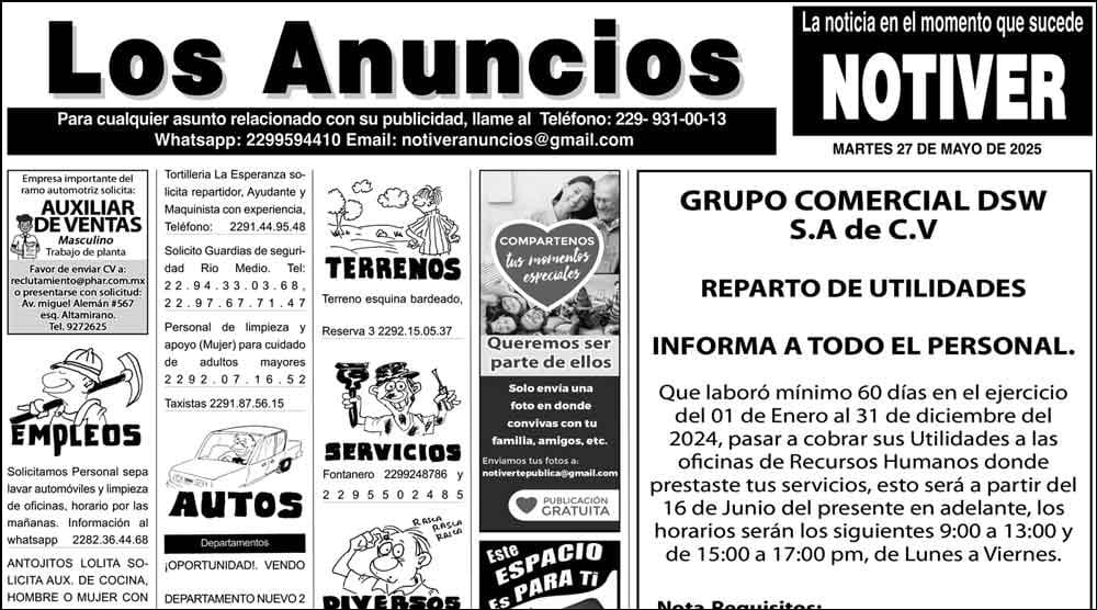 LOS ANUNCIOS ...LOS ANUNCIOS, AVISOS Y DEMÁS! - MARTES, 27 DE MAYO 2025 LOS ANUNCIOS, AVISOS Y DEMÁS! - MARTES, 27 DE MAYO 2025... 27 mayo 2025