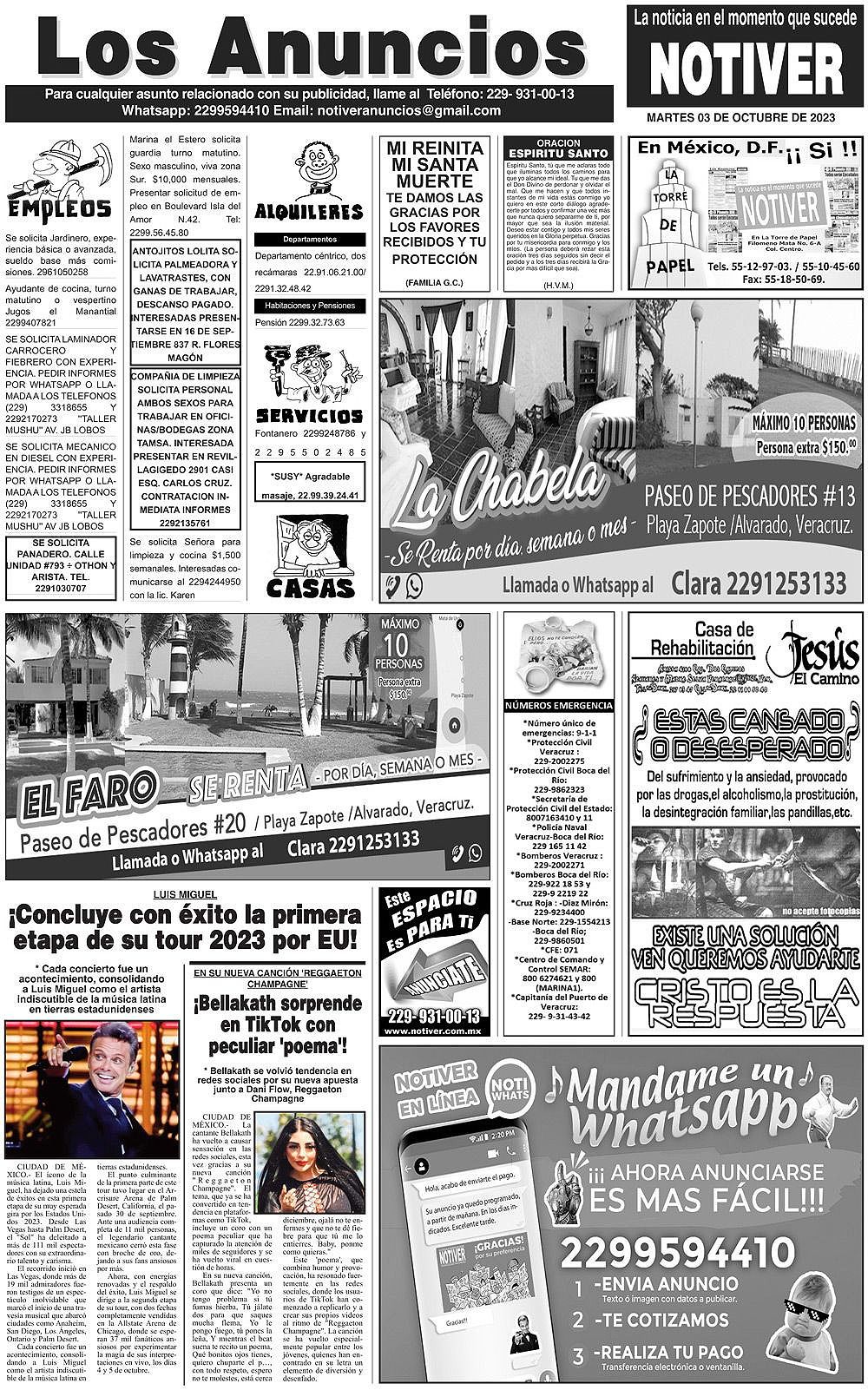 LOS ANUNCIOS ...LOS ANUNCIOS, AVISOS Y DEMÁS! - MARTES, 3 DE OCTUBRE 2023 LOS ANUNCIOS, AVISOS Y DEMÁS! - MARTES, 3 DE OCTUBRE 2023 3 octubre 2023 Cotice su Anuncio Su Correo Electrónico: Texto: Enviar