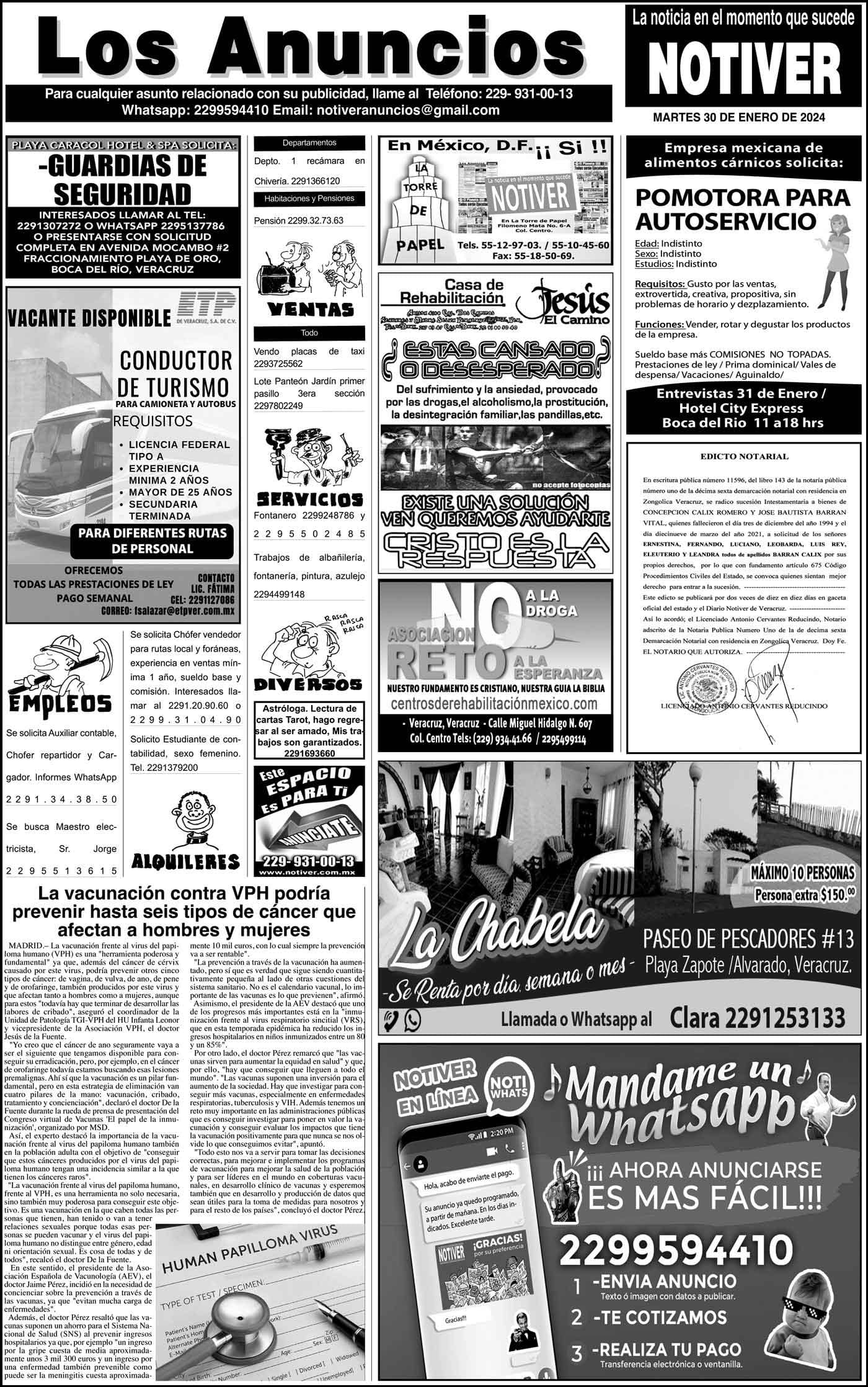 LOS ANUNCIOS ...LOS ANUNCIOS, AVISOS Y DEMÁS! - MARTES, 30 DE ENERO 2024 LOS ANUNCIOS, AVISOS Y DEMÁS! - MARTES, 30 DE ENERO 2024... 30 enero 2024 Cotice su Anuncio Su Correo Electrónico: Texto: Enviar