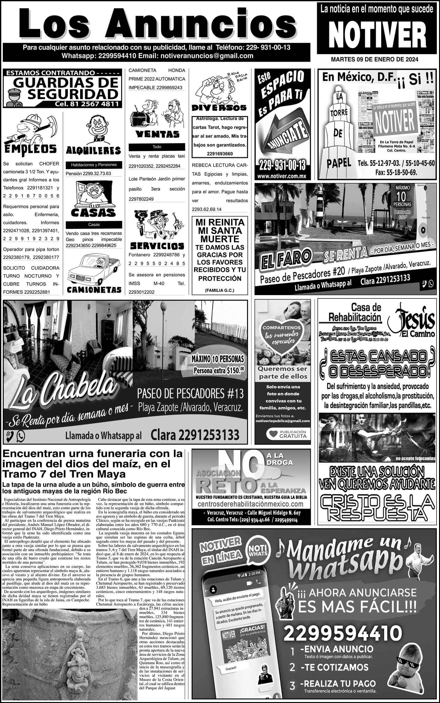 LOS ANUNCIOS ...LOS ANUNCIOS, AVISOS Y DEMÁS! - MARTES, 9 DE ENERO 2024 LOS ANUNCIOS, AVISOS Y DEMÁS! - MARTES, 9 DE ENERO 2024... 9 enero 2024 Cotice su Anuncio Su Correo Electrónico: Texto: Enviar