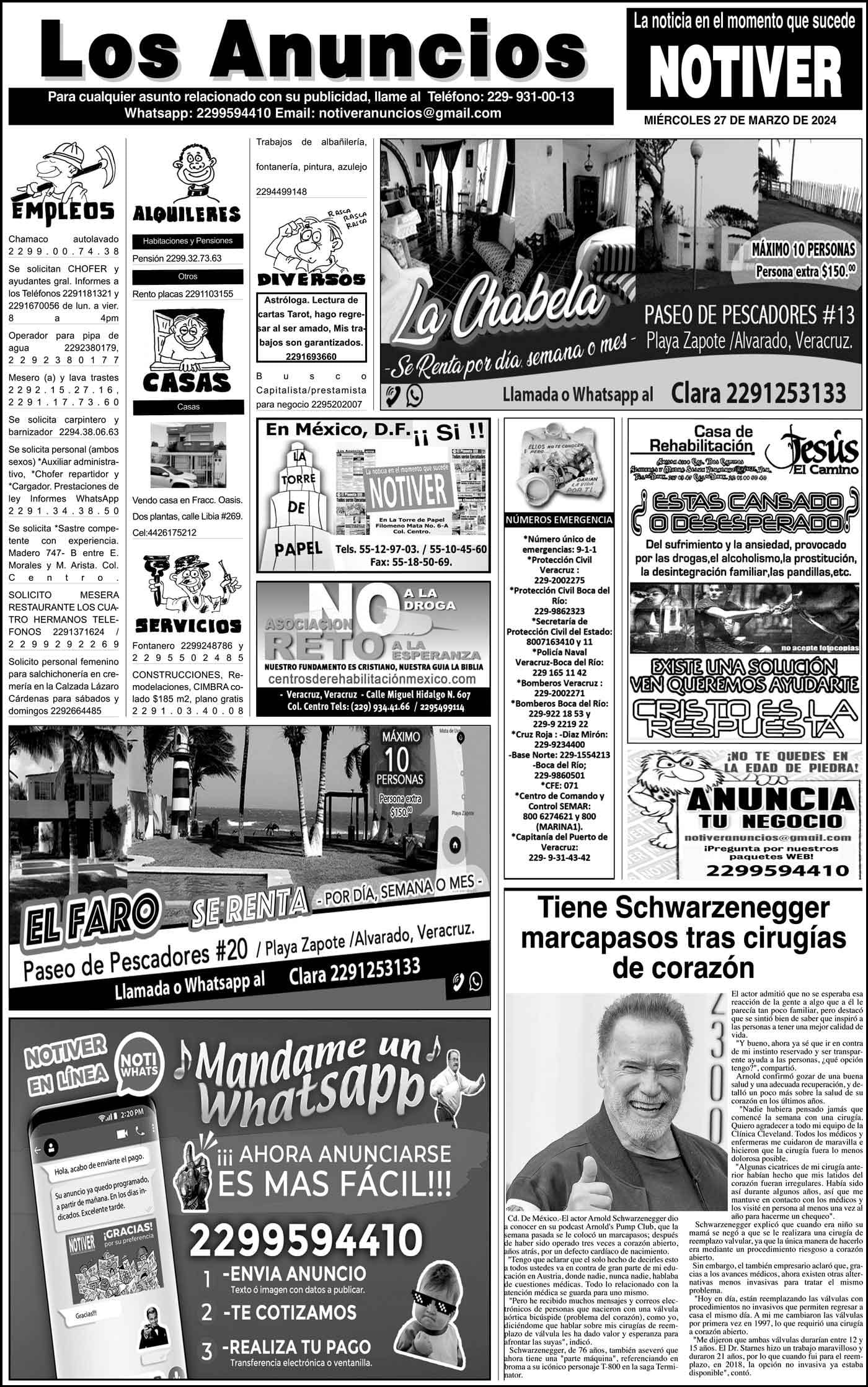 LOS ANUNCIOS ...LOS ANUNCIOS, AVISOS Y DEMÁS! - MIÉRCOLES, 27 DE MARZO 2024 LOS ANUNCIOS, AVISOS Y DEMÁS! - MIÉRCOLES, 27 DE MARZO 2024... 27 marzo 2024 Cotice su Anuncio Su Correo Electrónico: Texto: Enviar