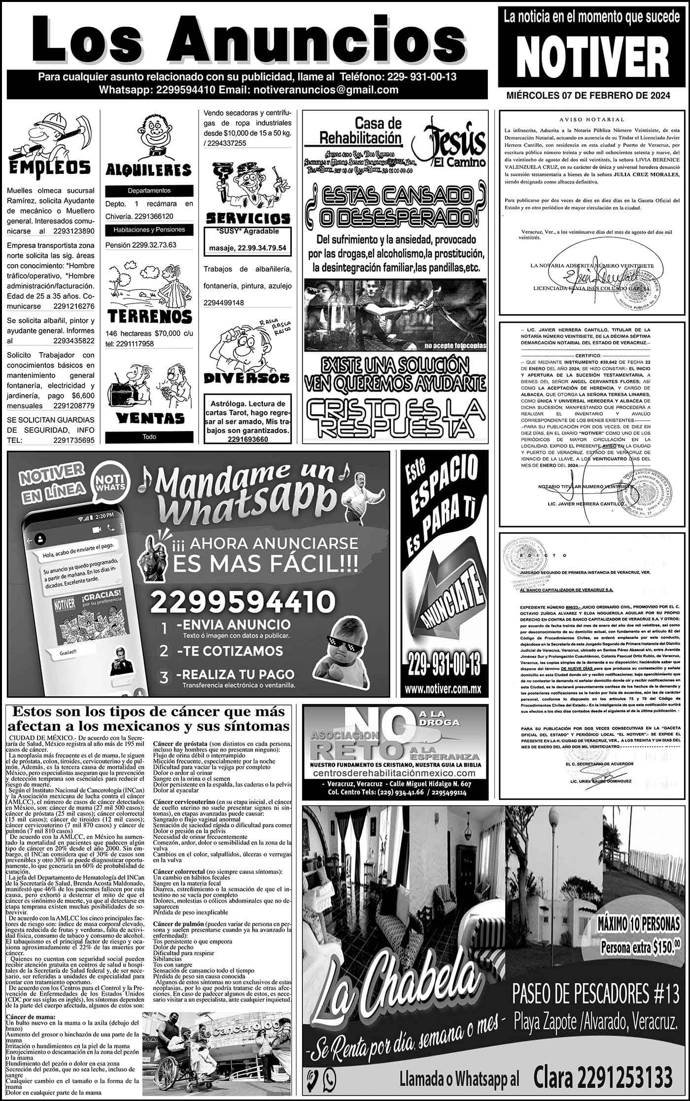 LOS ANUNCIOS ...LOS ANUNCIOS, AVISOS Y DEMÁS! - MIÉRCOLES, 7 DE FEBRERO 2024 LOS ANUNCIOS, AVISOS Y DEMÁS! - MIÉRCOLES, 7 DE FEBRERO 2024... 7 febrero 2024 Cotice su Anuncio Su Correo Electrónico: Texto: Enviar