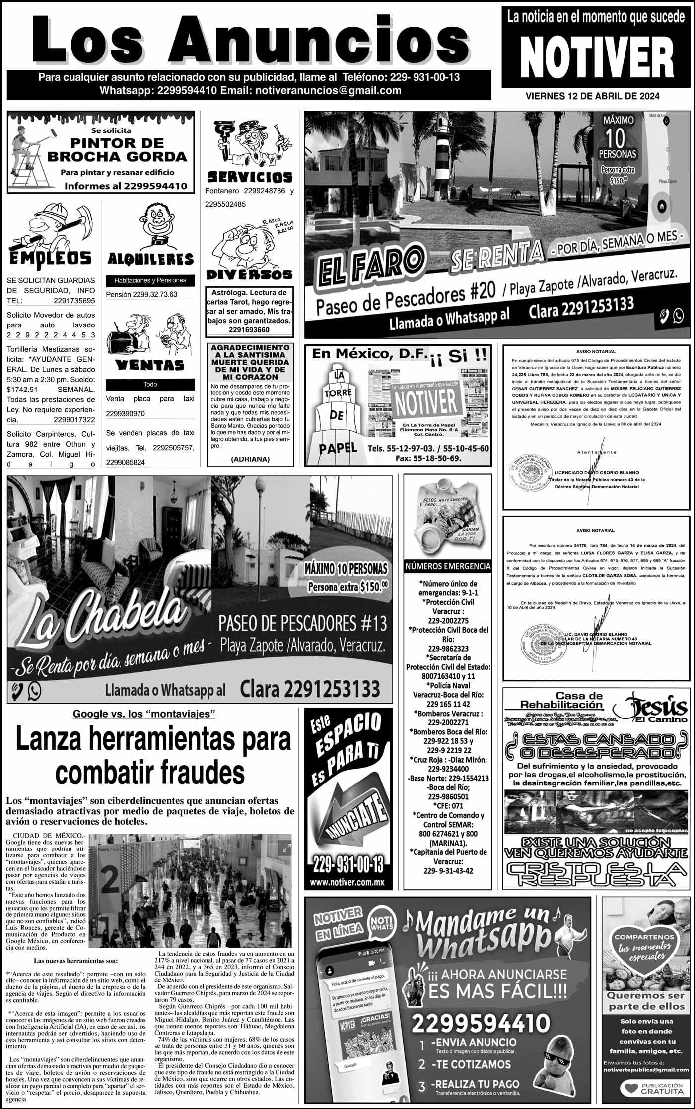 LOS ANUNCIOS ...LOS ANUNCIOS, AVISOS Y DEMÁS! - VIERNES, 12 DE ABRIL 2024 LOS ANUNCIOS, AVISOS Y DEMÁS! - VIERNES, 12 DE ABRIL 2024... 12 abril 2024 Cotice su Anuncio Su Correo Electrónico: Texto: Enviar