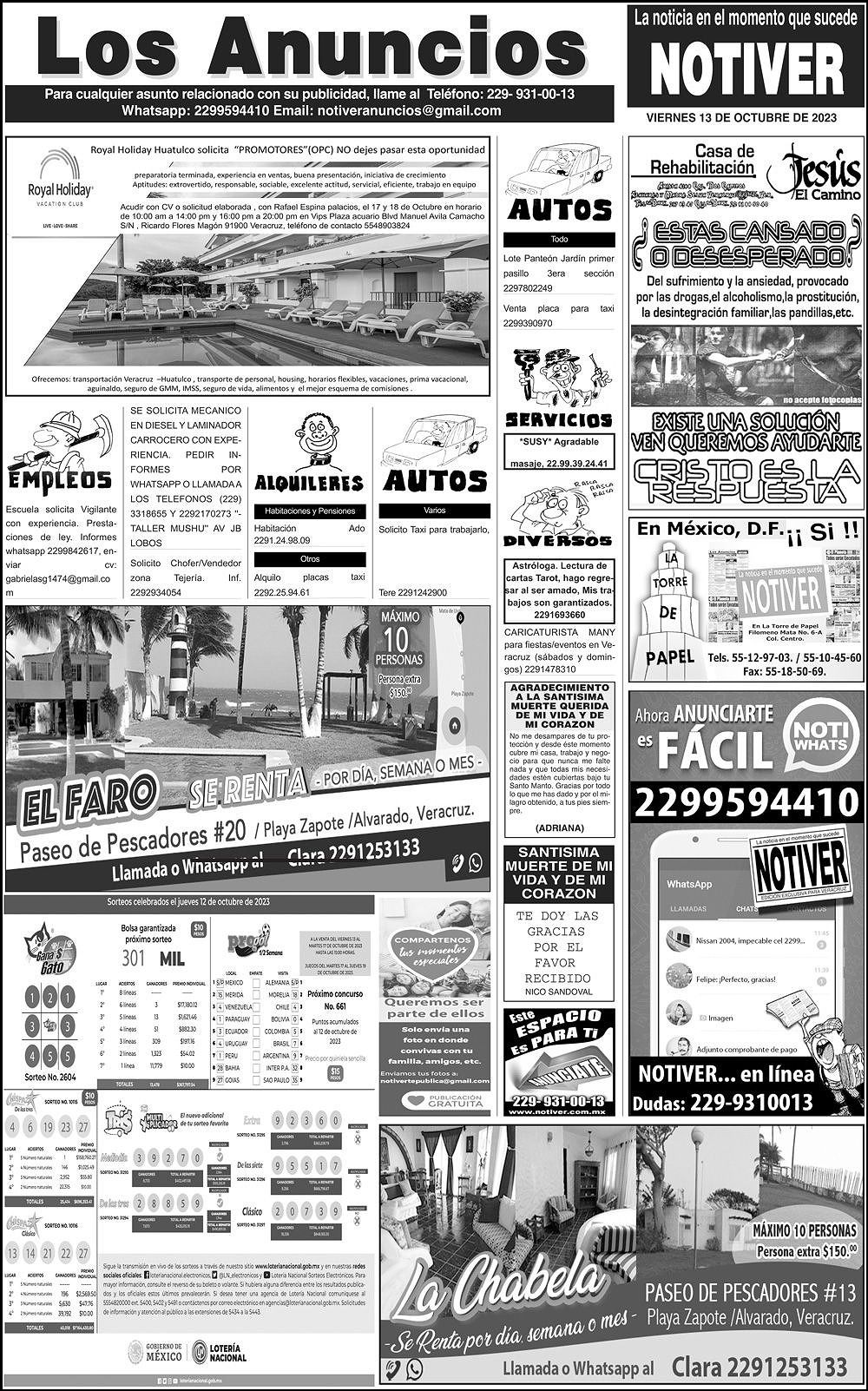 LOS ANUNCIOS ...LOS ANUNCIOS, AVISOS Y DEMÁS! - VIERNES, 13 DE OCTUBRE 2023 LOS ANUNCIOS, AVISOS Y DEMÁS! - VIERNES, 13 DE OCTUBRE 2023 13 octubre 2023 Cotice su Anuncio Su Correo Electrónico: Texto: Enviar