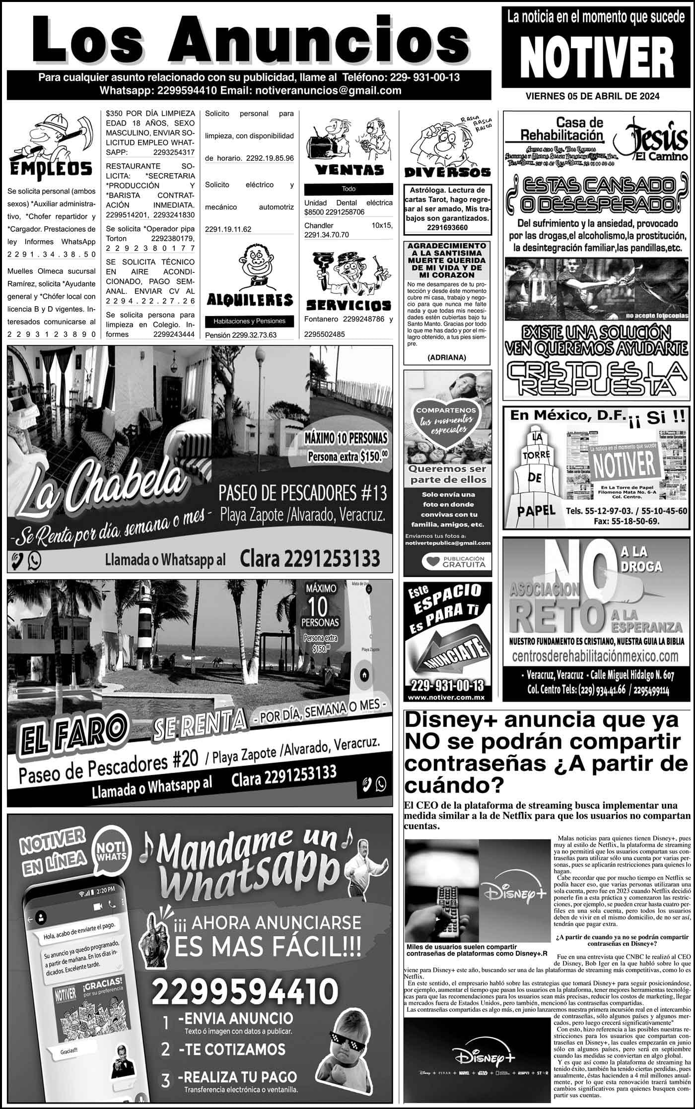 LOS ANUNCIOS ...LOS ANUNCIOS, AVISOS Y DEMÁS! - VIERNES, 5 DE ABRIL 2024 LOS ANUNCIOS, AVISOS Y DEMÁS! - VIERNES, 5 DE ABRIL 2024... 5 abril 2024 Cotice su Anuncio Su Correo Electrónico: Texto: Enviar