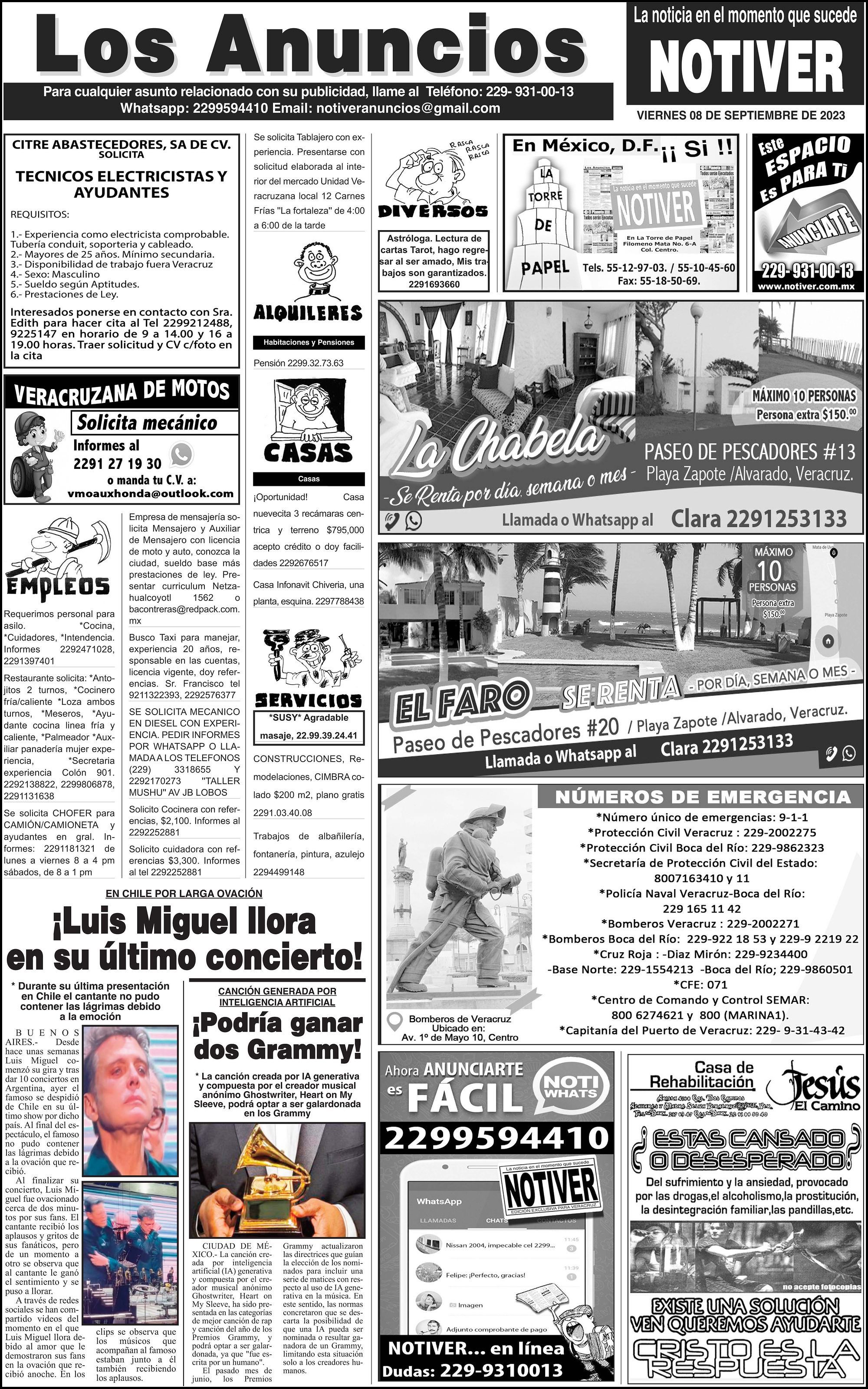 LOS ANUNCIOS ...LOS ANUNCIOS, AVISOS Y DEMÁS! - VIERNES, 8 DE SEPTIEMBRE 2023 LOS ANUNCIOS, AVISOS Y DEMÁS! - VIERNES, 8 DE SEPTIEMBRE 2023 8 septiembre 2023 Cotice su Anuncio Su Correo Electrónico: Texto: Enviar