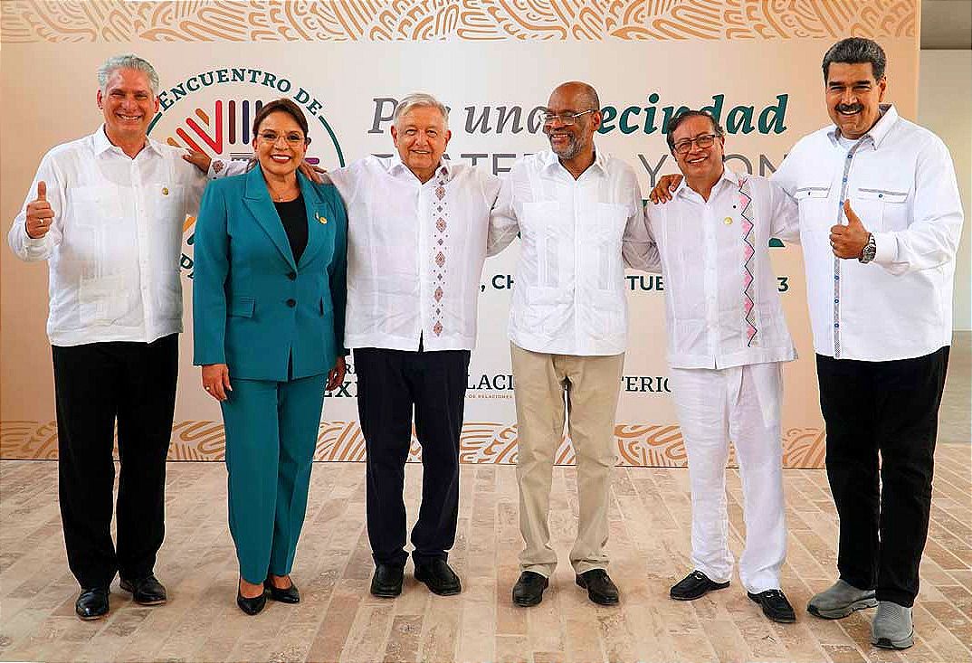 Este domingo, el presidente Andrés Manuel López Obrador estuvo con los presidentes de Cuba, Miguel Díaz-Canel; de Venezuela, Nicolás Maduro; Gustavo Petro de Colombia; Xiomara Castro de Honduras, y de Haití, Jovenel Moïse, así como representantes de otros cinco países.