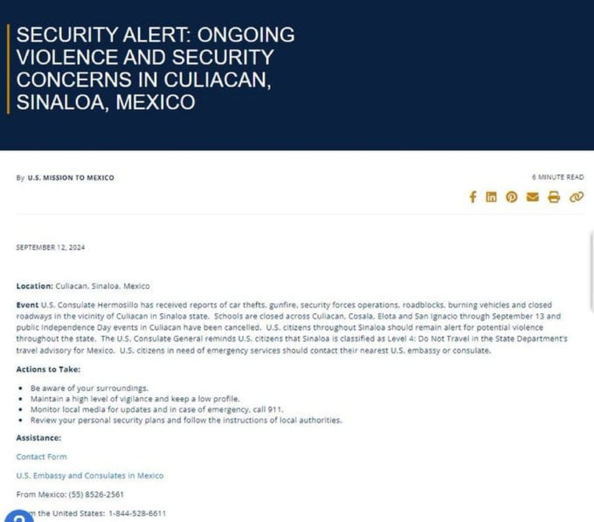El gobernador del estado, Rubén Rocha Moya, llamó a la población a mantener la calma, afirmó que se cuenta con protocolos de reacción y con refuerzos de 100 elementos de las fuerzas especiales del Ejército, con cuatro aviones artillados tipo Texan y helicópteros.