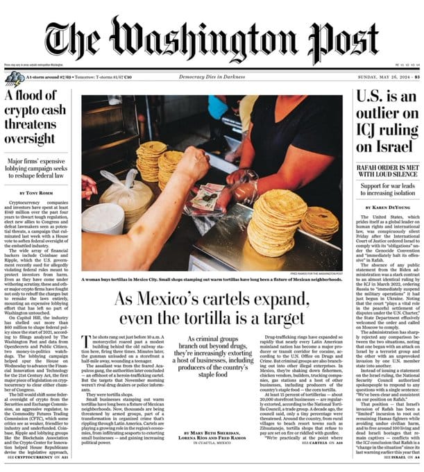 Los diarios estadounidenses The New York Times y The Washington Post publicaron dos reportes donde advierten por la situación de violencia que se vive en México en dos ámbitos distintos: las elecciones y la industria de las tortillas.