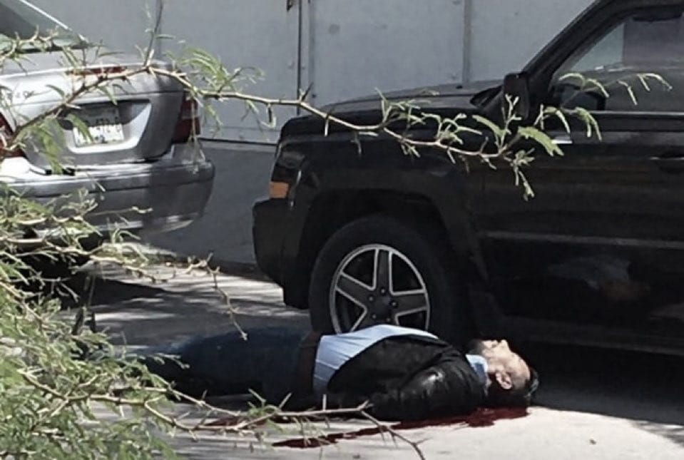 El cuerpo quedó tendido junto a una camioneta negra.