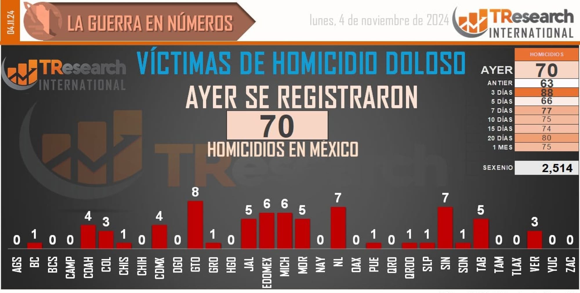 Sin embargo, apenas durante el domingo 3 de noviembre, se reportaron siete homicidios dolosos en Culiacán y los robos de vehículo se mantienen en la capital, que sumó 661 casos durante octubre.