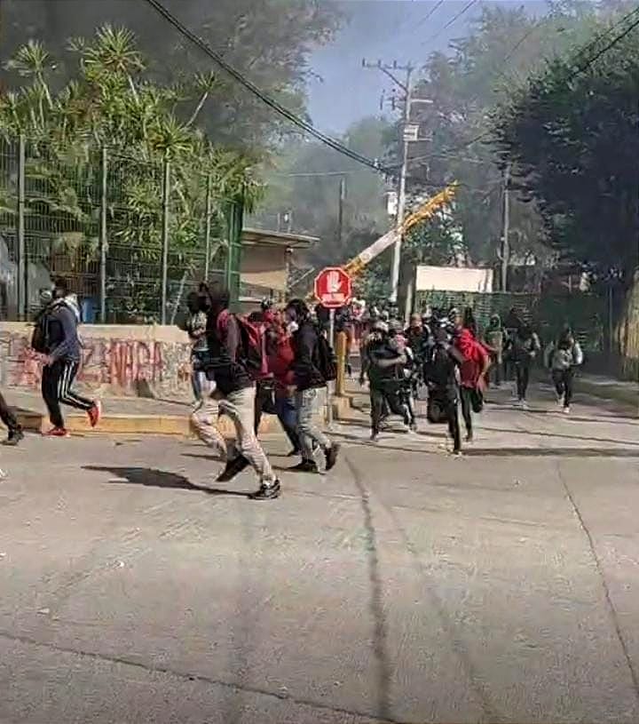 Los estudiantes lanzaron petardos y piedras a la sede.