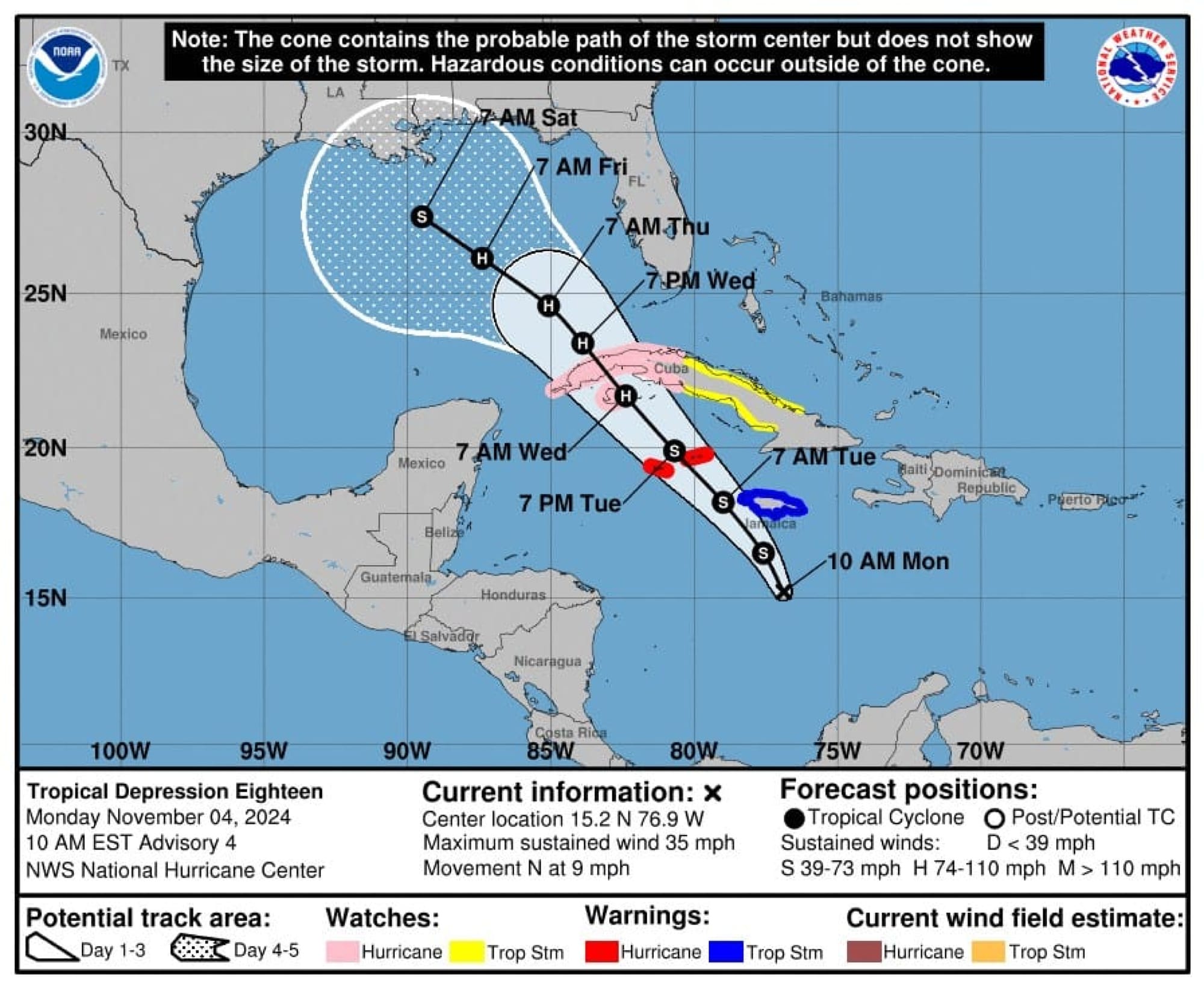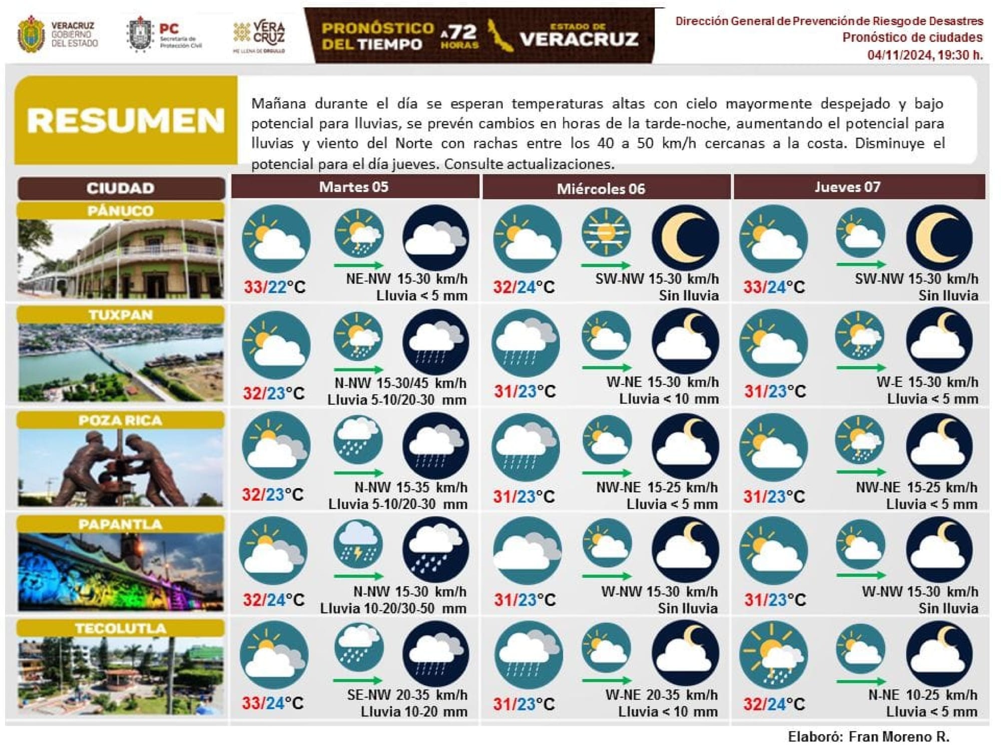 Pronóstico de lluvias para el martes 05 de noviembre: