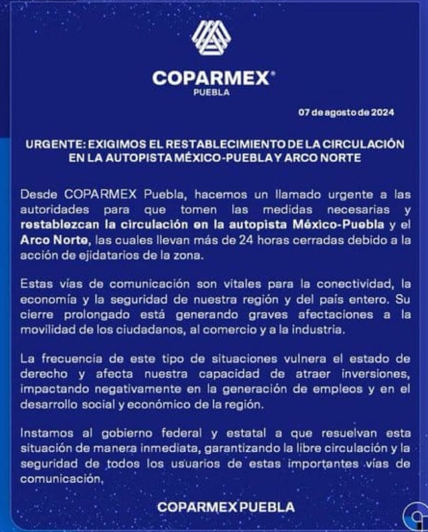 La consigna es la misma: el pago de tierras ejidales que afirman les fueron expropiadas hace 50 años para el Arco Norte, sitio en el que hace dos semanas también cerraron, pero a la altura del municipio de Axapusco; también reclaman pago por tierras que fueron destinadas para el Parque Nacional Izta-Popo.