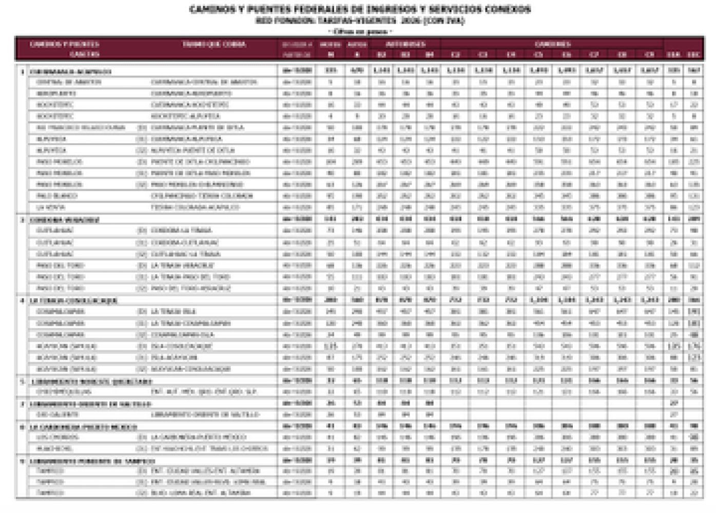 *Para recorrer el tramo de Córdoba a Veracruz, el costo para los automovilistas subió de 270 a 282 pesos, mientras que tomar la carretera de México a Cuernavaca implica un cobro que se elevó de 149 pesos a 156 pesos