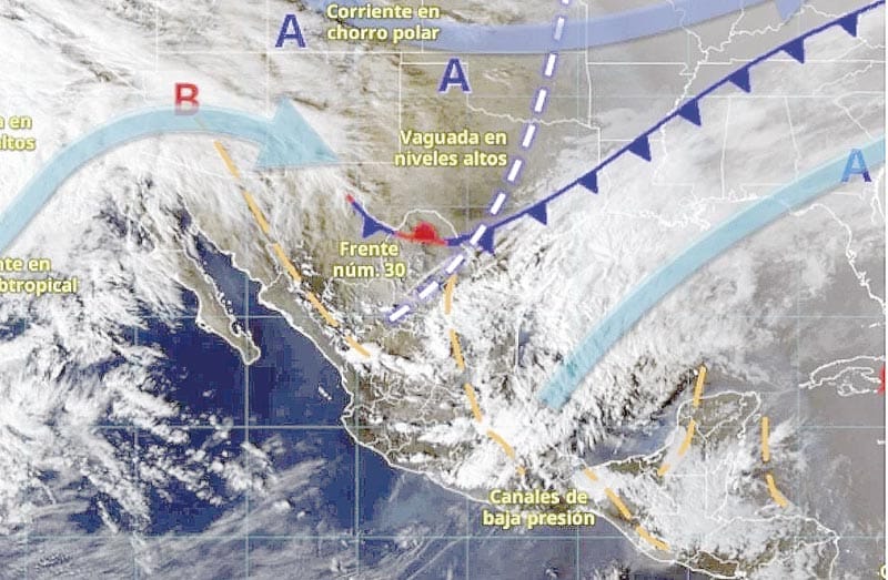 El próximo viernes 23 de enero, el frente frío número 30 se aproximará al noreste de México, desplazándose lentamente, desde el sábado hasta el martes, sobre el noreste, oriente y sureste de México, así como la península de Yucatán.