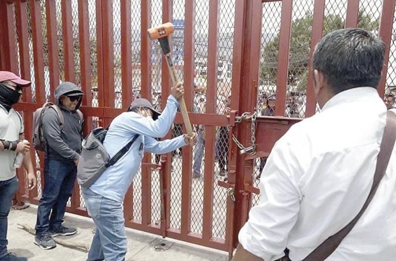 CHILPANCINGO (Agencias).- A golpe de mazazos, un nutrido grupo de maestros de la Coordinadora Estatal de Trabajadores de la Educación del Estado de Guerrero (CETEG) derribó la puerta del Congreso local y realizó pintas en el edificio con consignas en contra de la Ley del ISSSTE.