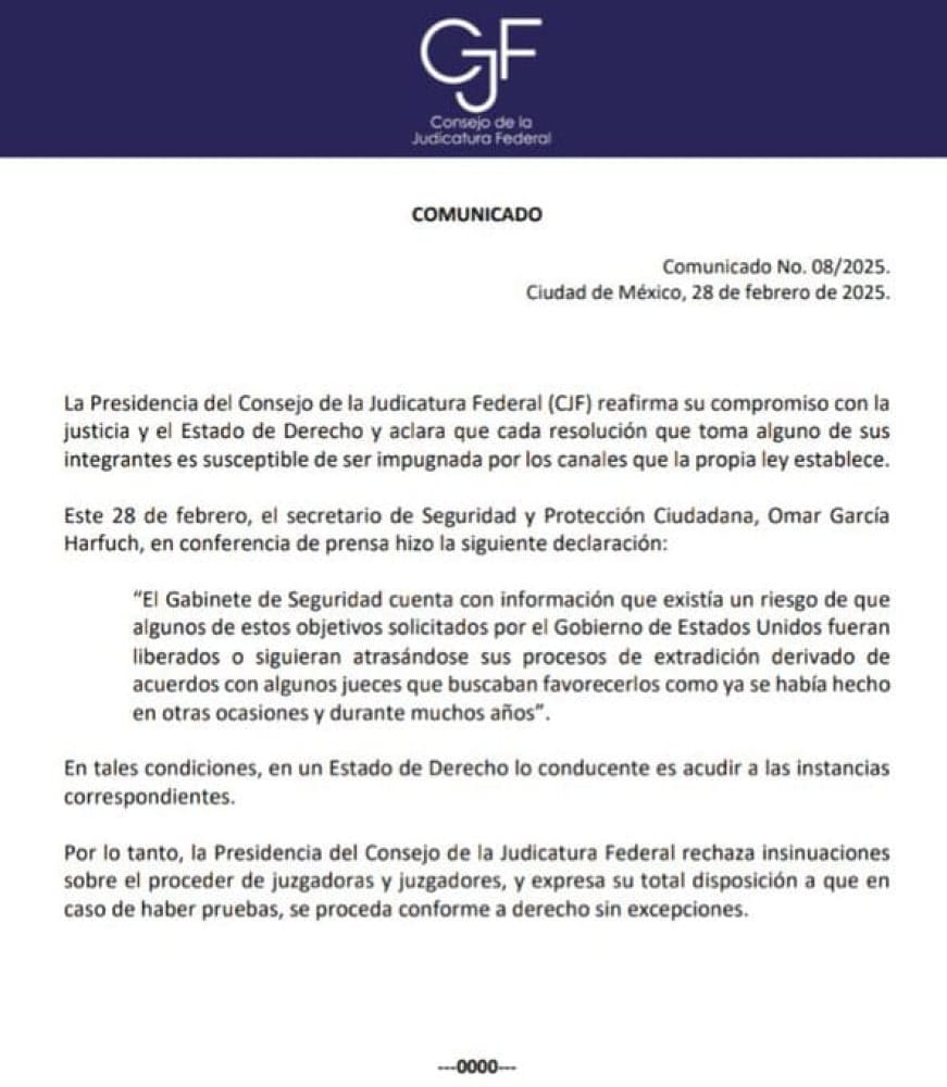 Omar García Harfuch afirmó hace unos minutos que algunos jueces tenían “acuerdos” con los narcos entregados a EEUU.