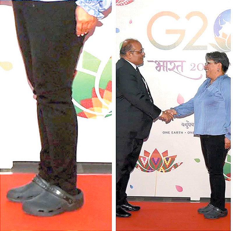 Sin embargo, su llegada al país asiático se vio opacada por las críticas que recibió por los internautas al aparecer usando ‘Crocs’, mientras era recibida por autoridades de la India y organizadores del encuentro.