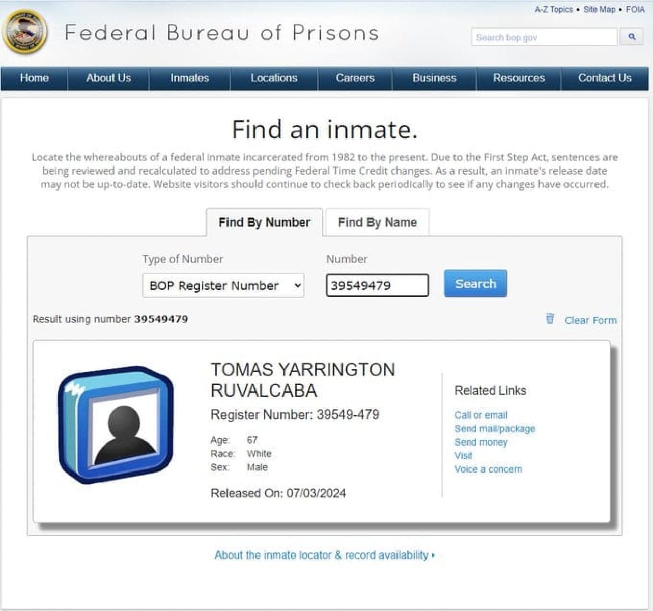 Según registros de la Agencia Federal de Prisiones, del Departamento de Justicia de los Estados Unidos, el expriísta fue liberado el pasado 3 de julio y se espera que sea deportado a México, donde tiene pendiente una orden de aprehensión por su presunta responsabilidad en los delitos de operaciones con recursos de procedencia ilícita y delincuencia organizada.