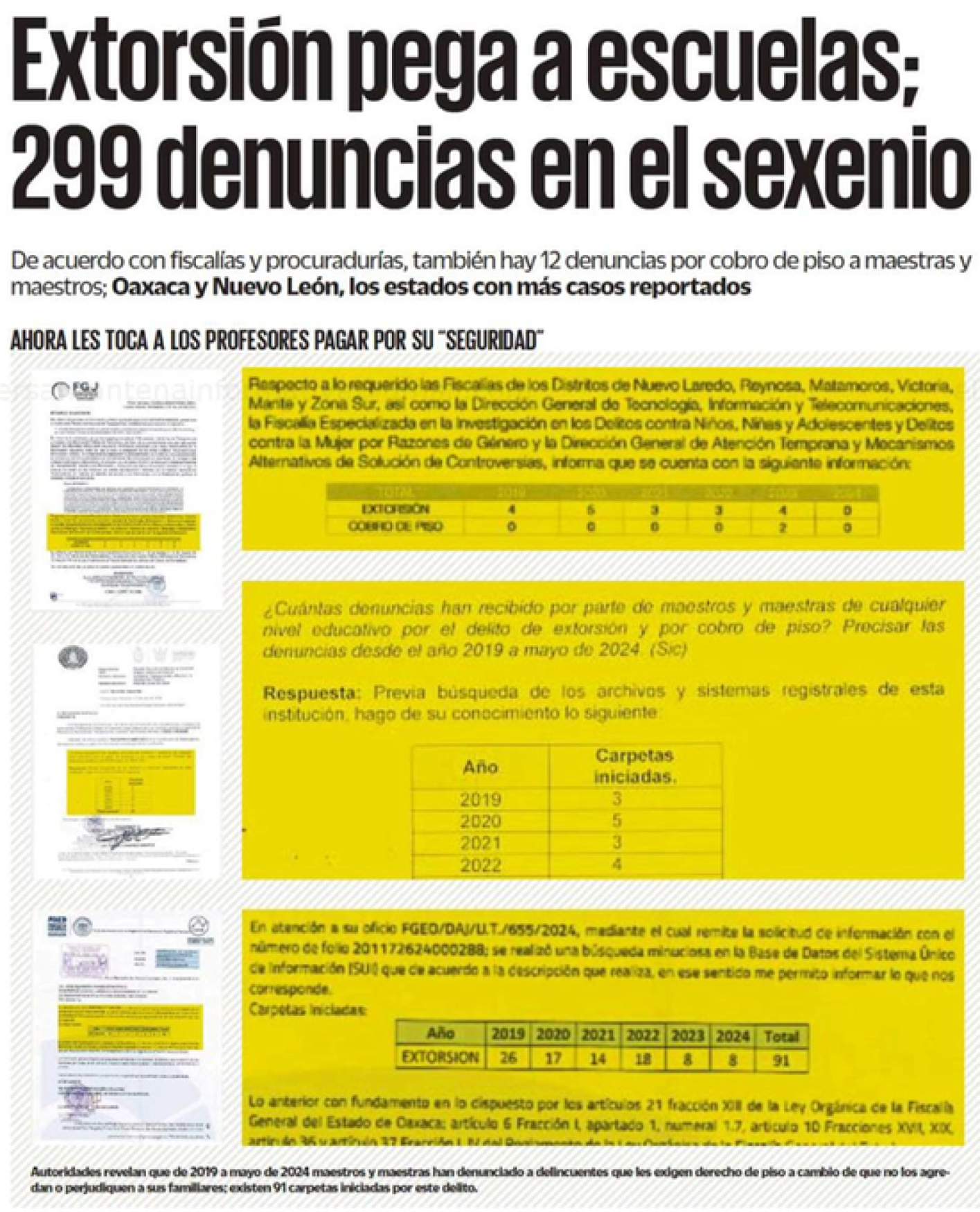 CIUDAD DE MÉXICO.-La extorsión y el cobro de piso también alcanza a maestros y maestras de escuelas públicas y privadas de todo el país, incluso a familiares de alumnos.