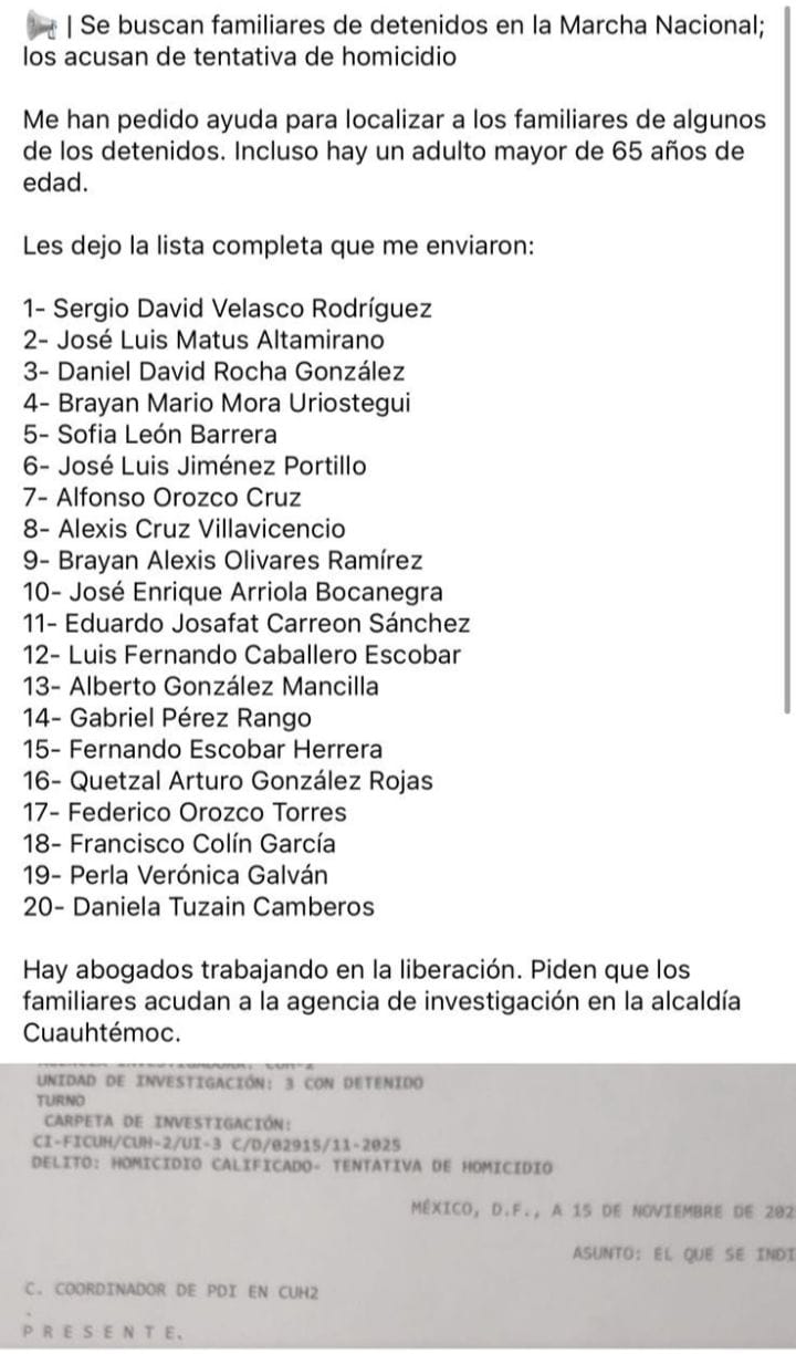 La madre de Ángel identificada como Raquel, expresó su preocupación y exigencia por la liberación de su hijo de 19 años, y de su nuera Guadalupe también de 19 años, quienes fueron detenidos durante la jornada de protestas de este sábado.