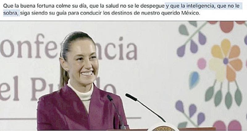 “Que la buena fortuna colme su día, que la salud no se le despegue y que la inteligencia, que no le sobra, siga siendo su guía para conducir los destinos de nuestro querido México”, escribió en su segundo párrafo.