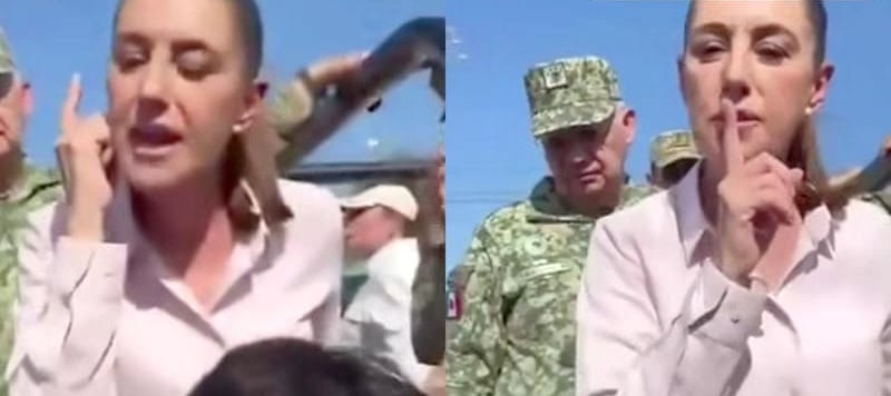 En la batea iban con ella el secretario de la Defensa, las secretarias de Gobernación, de Bienestar y el gobernador del estado.