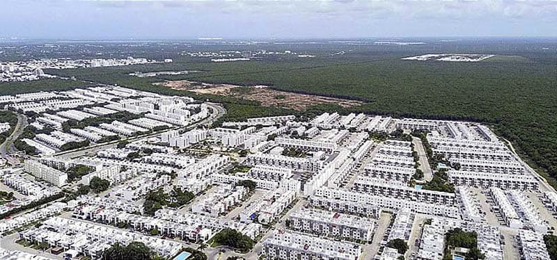 El inmueble de mayor extensión, de 159 hectáreas de superficie, se ubica al norte de Playa del Carmen, donde los ingenieros militares construyeron un camino con materiales de calidad para el Tren Maya, pero que también favoreció a este terreno.