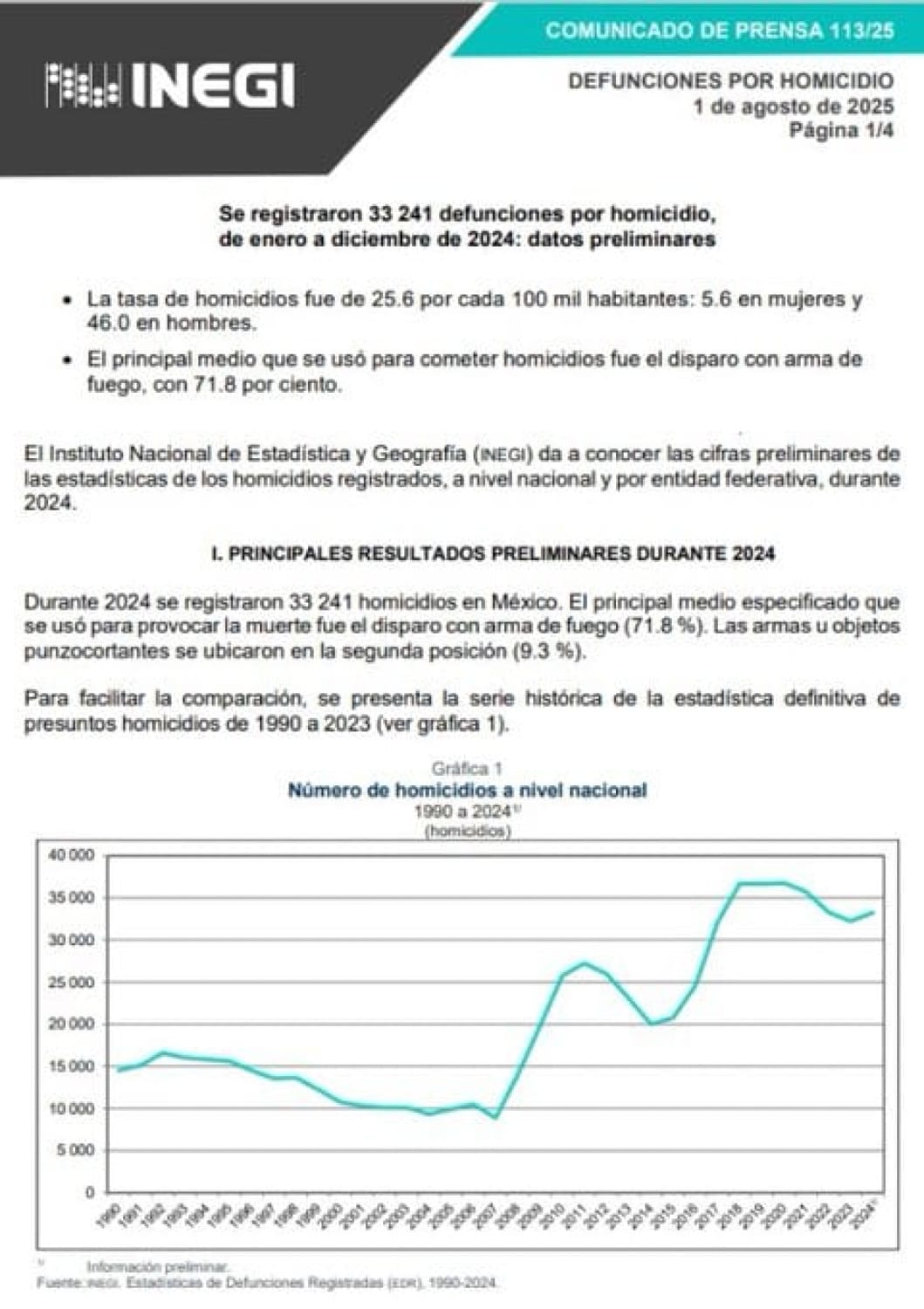 "En julio de 2025 se contabilizaron 155 homicidios dolosos (cifra preliminar), el total mensual más bajo desde 2017. Este avance refleja el impacto positivo de la estrategia CONFIA impulsada por la Secretaría de Seguridad y Paz, bajo el liderazgo de nuestra Gobernadora Libia Dennise", posteó el funcionario estatal minutos antes de las 15:00 horas del primer día de agosto.