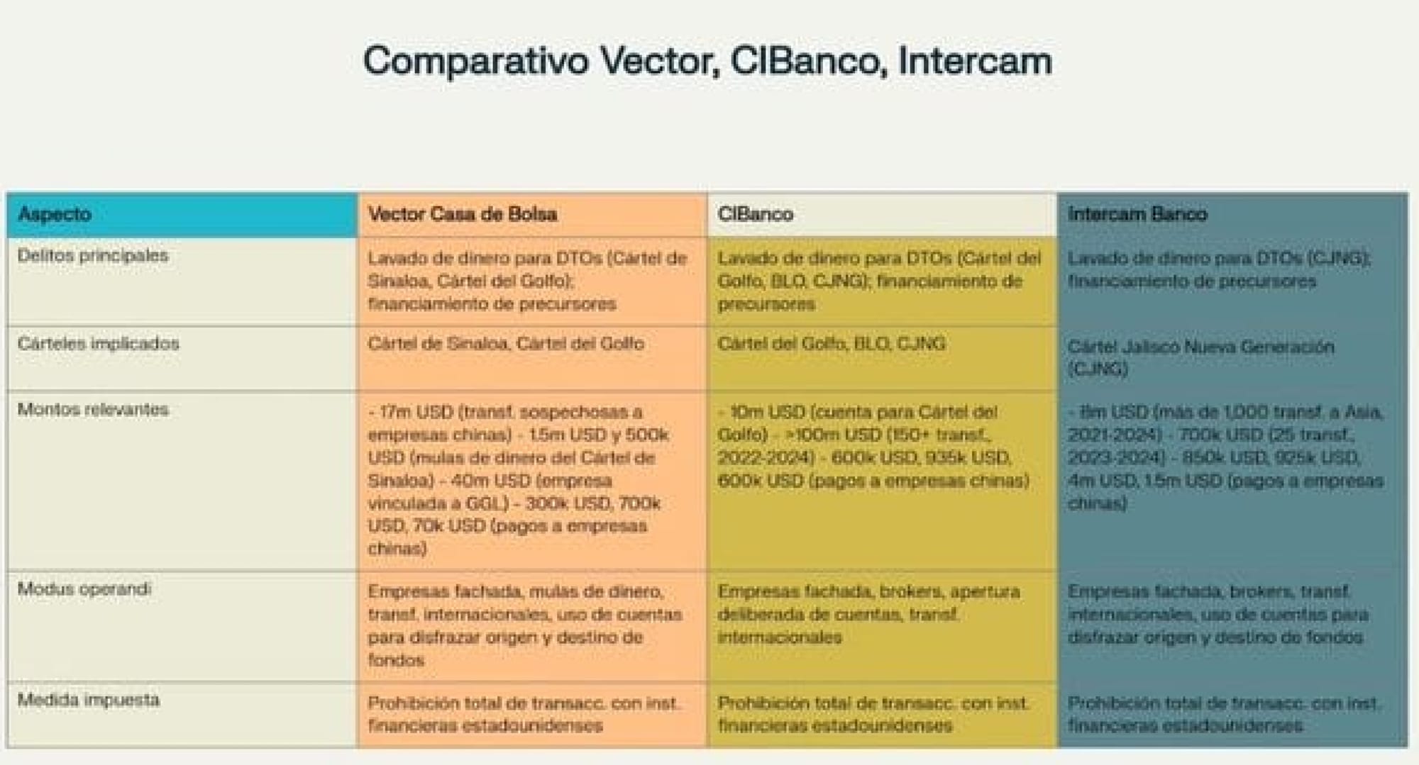La postura de Intercam se hizo pública horas después de que Vector Casa de Bolsa, propiedad del empresario Alfonso Romo, fuera la primera en reaccionar y rechazar los señalamientos emitidos por FinCEN, que acusa a esa institución de lavar dinero para el crimen organizado, especialmente para Joaquín “El Chapo” Guzmán.