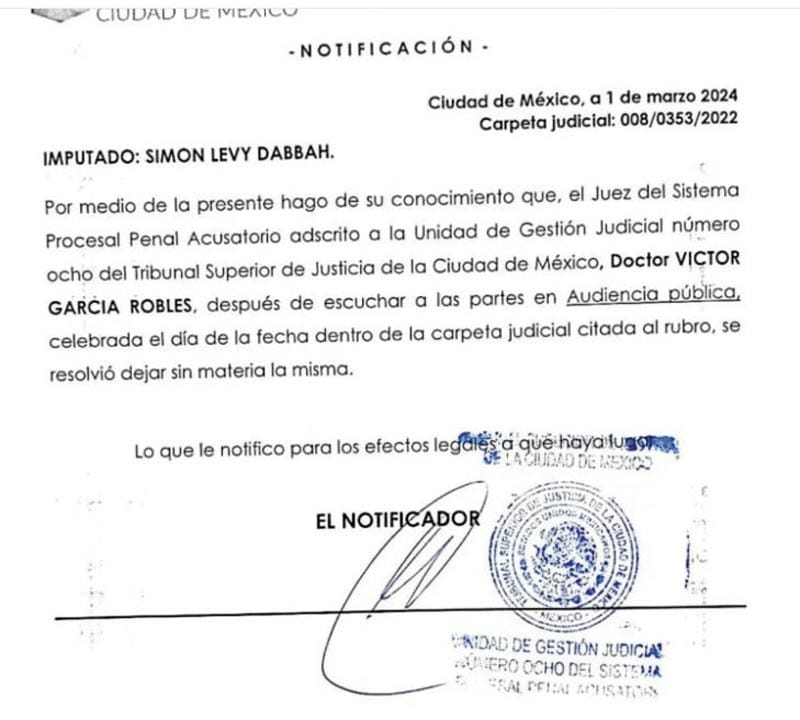CIUDAD DE MÉXICO (Agencias).- El exsubsecretario de Turismo, Simón Levy Dabbah, acusado de daño doloso a la propiedad y presunto fraude, confirmó que no existe una ficha roja en su contra.